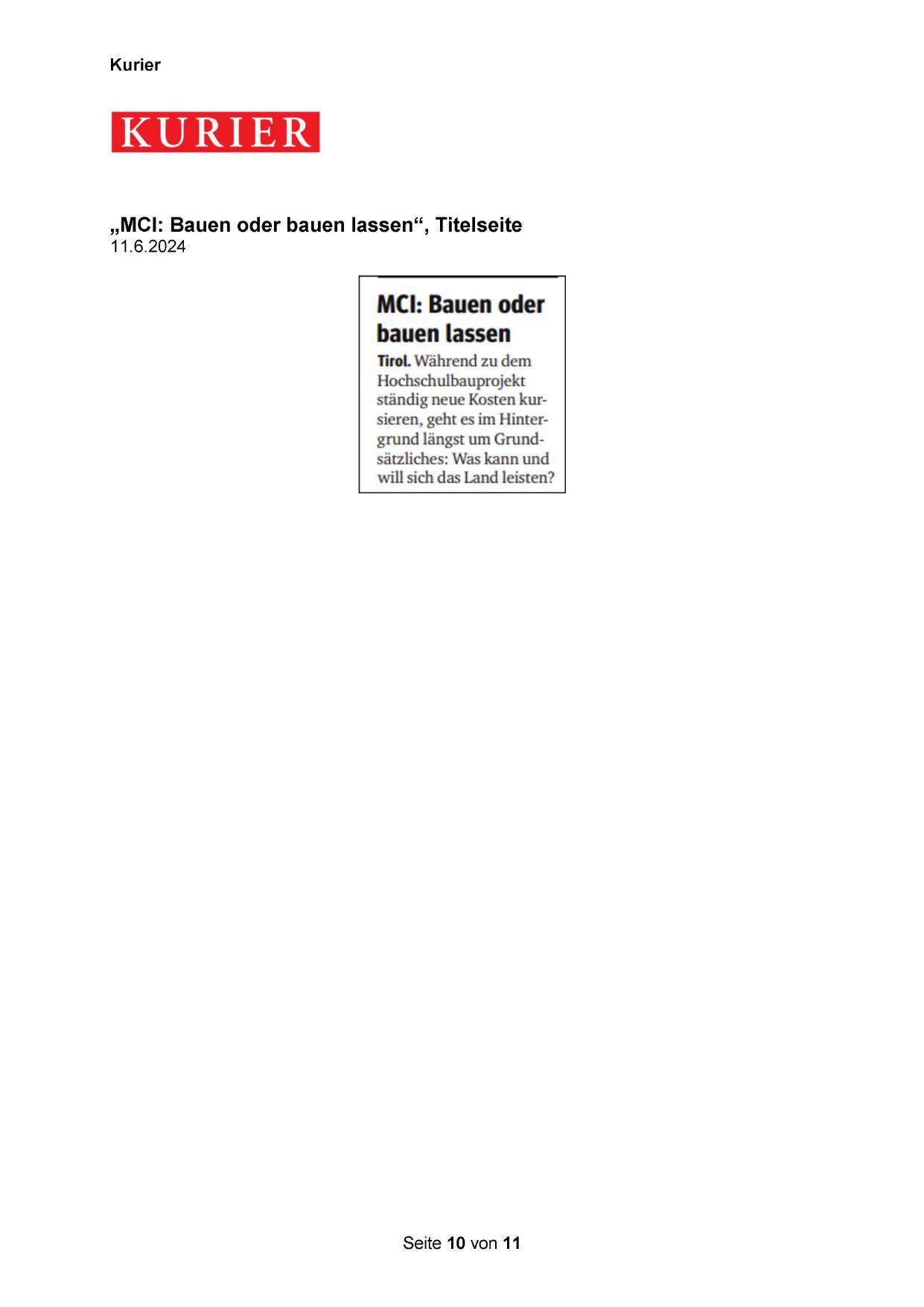 „MCI: Bauen oder bauen lassen“, Titelseite