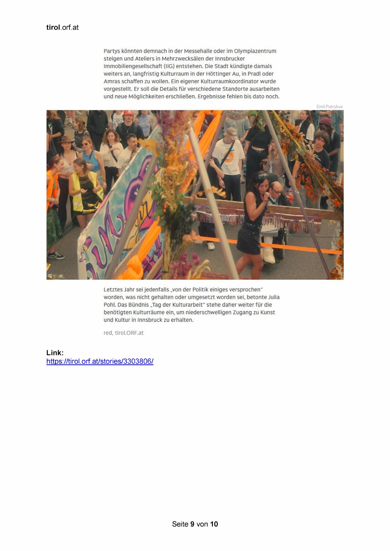 weiters an, langfristig Kulturraum in der Höttinger Au, in Pradi oder