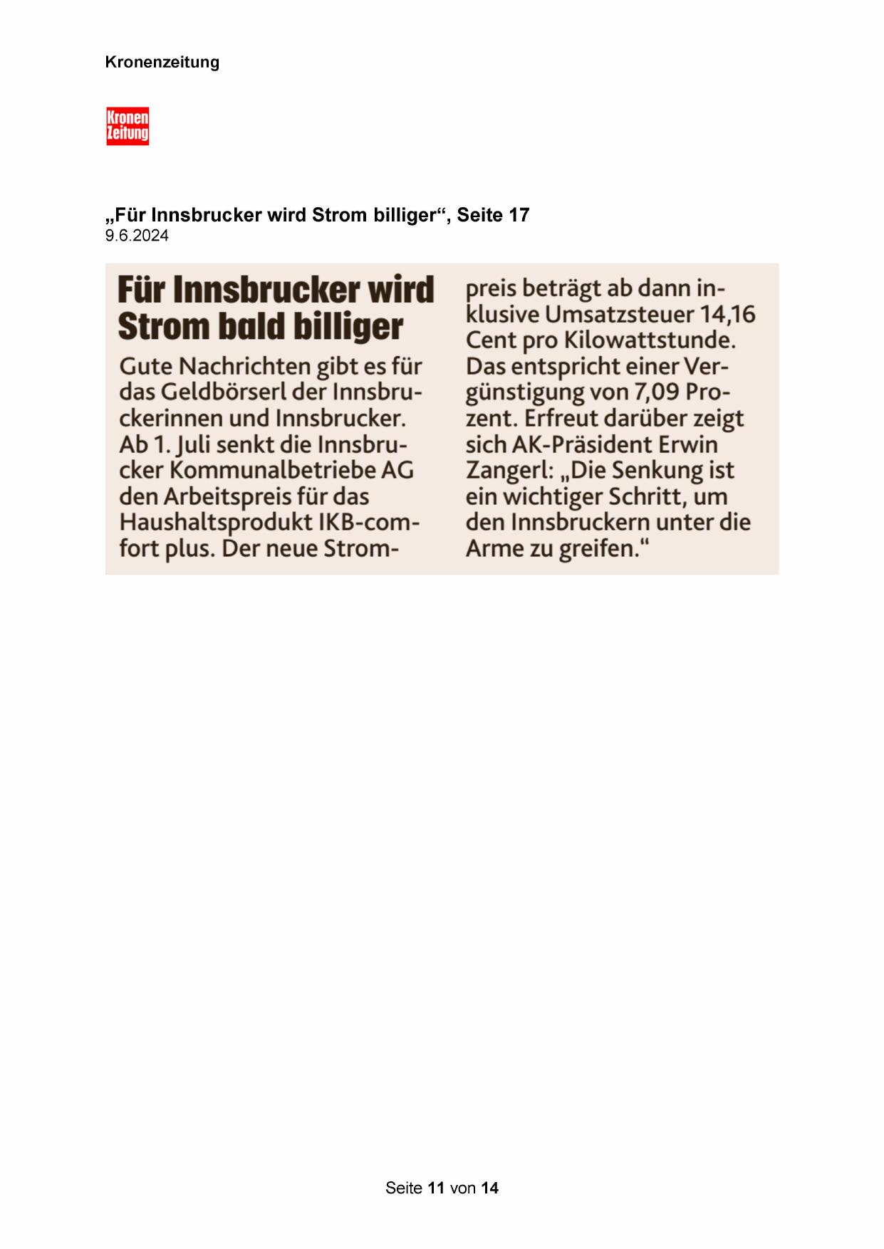„Für Innsbrucker wird Strom billiger‘“, Seite 17