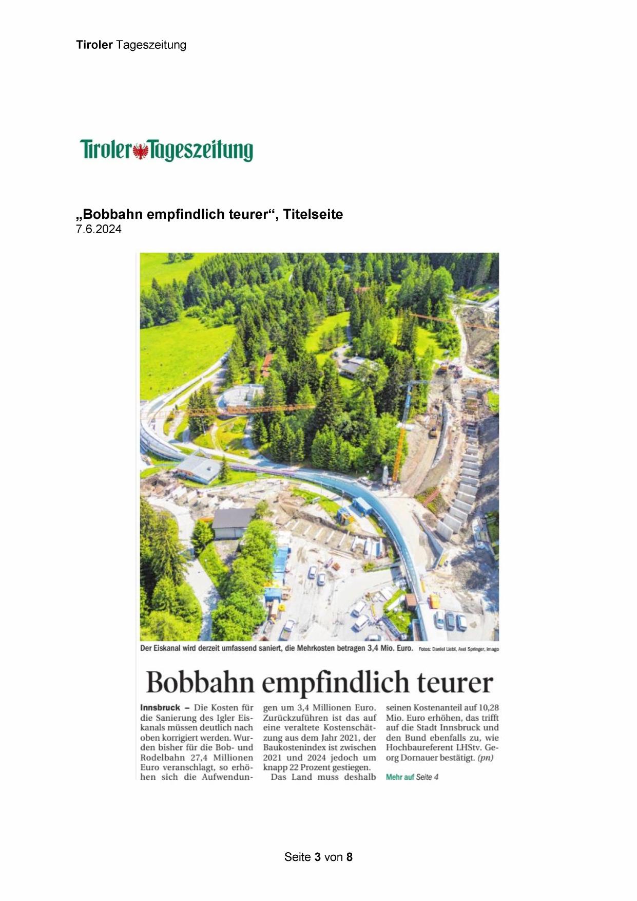 die Sanierung des Igler Eiskanals müssen deutlich nach