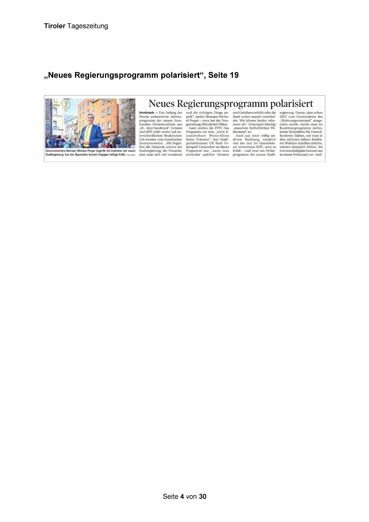 Woche präsentierte Arbeitsprogramm der neuen Innsbrucker Dreierkoalition aus