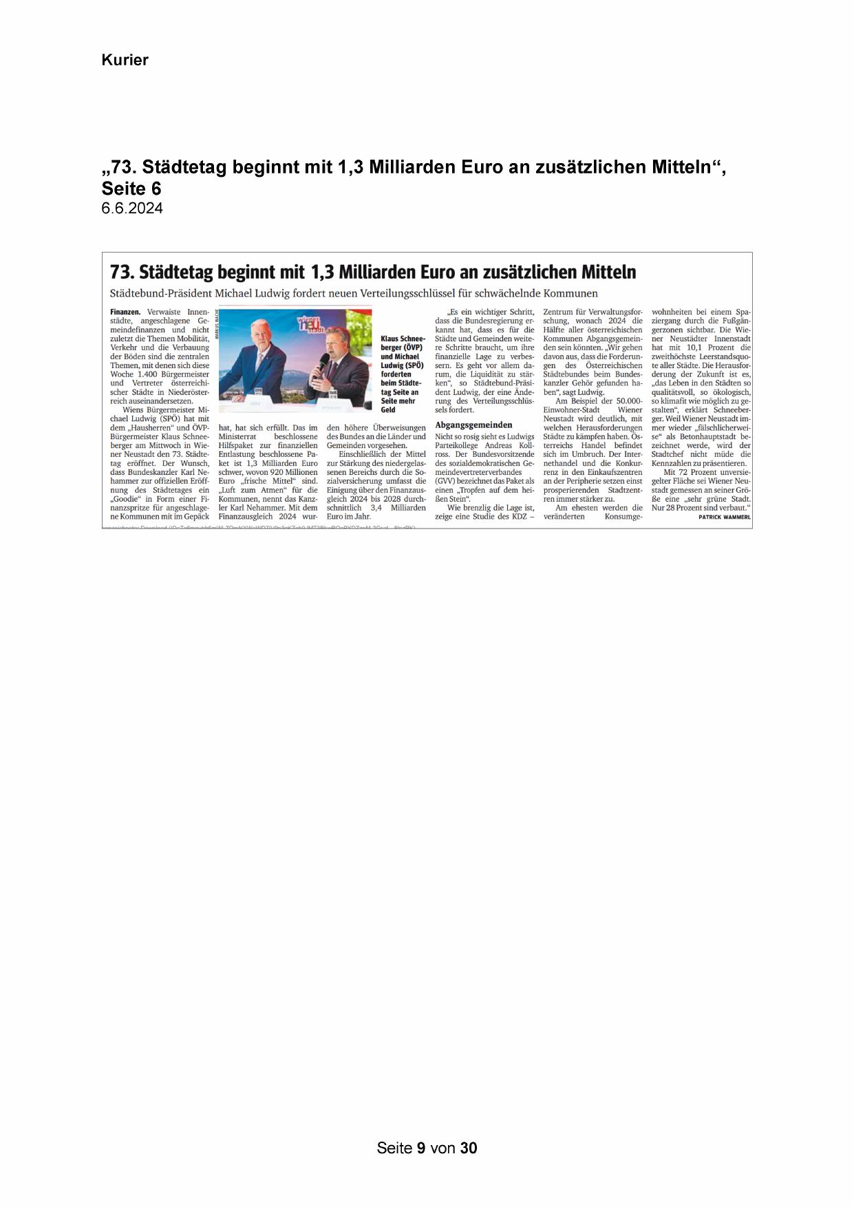 finanzielle Lage zu verbessern. Es geht vor allem darum, die Liquidität zu stärken“, so Städtebund-Präsident Ludwig, der eine Anderung des Verteilungsschlüssels fordert.