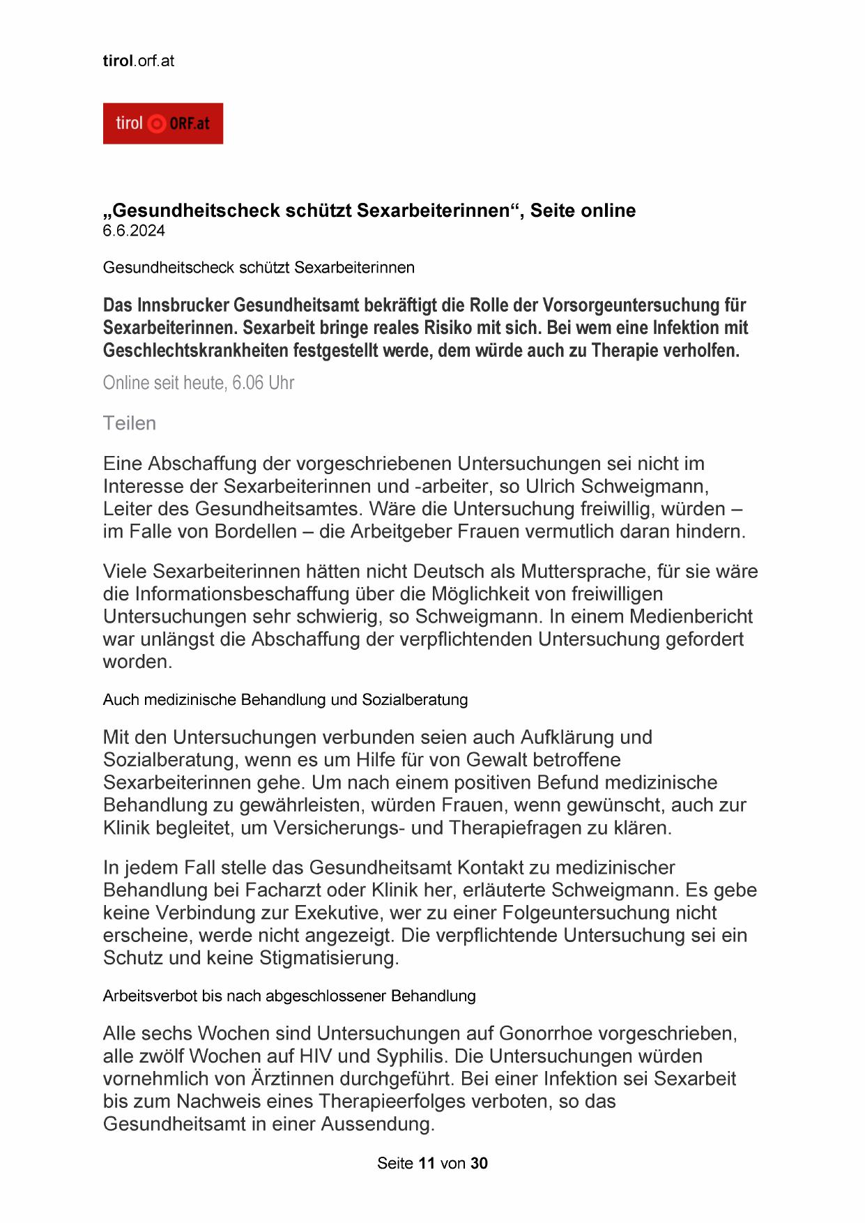 „Gesundheitscheck schützt Sexarbeiterinnen“, Seite online