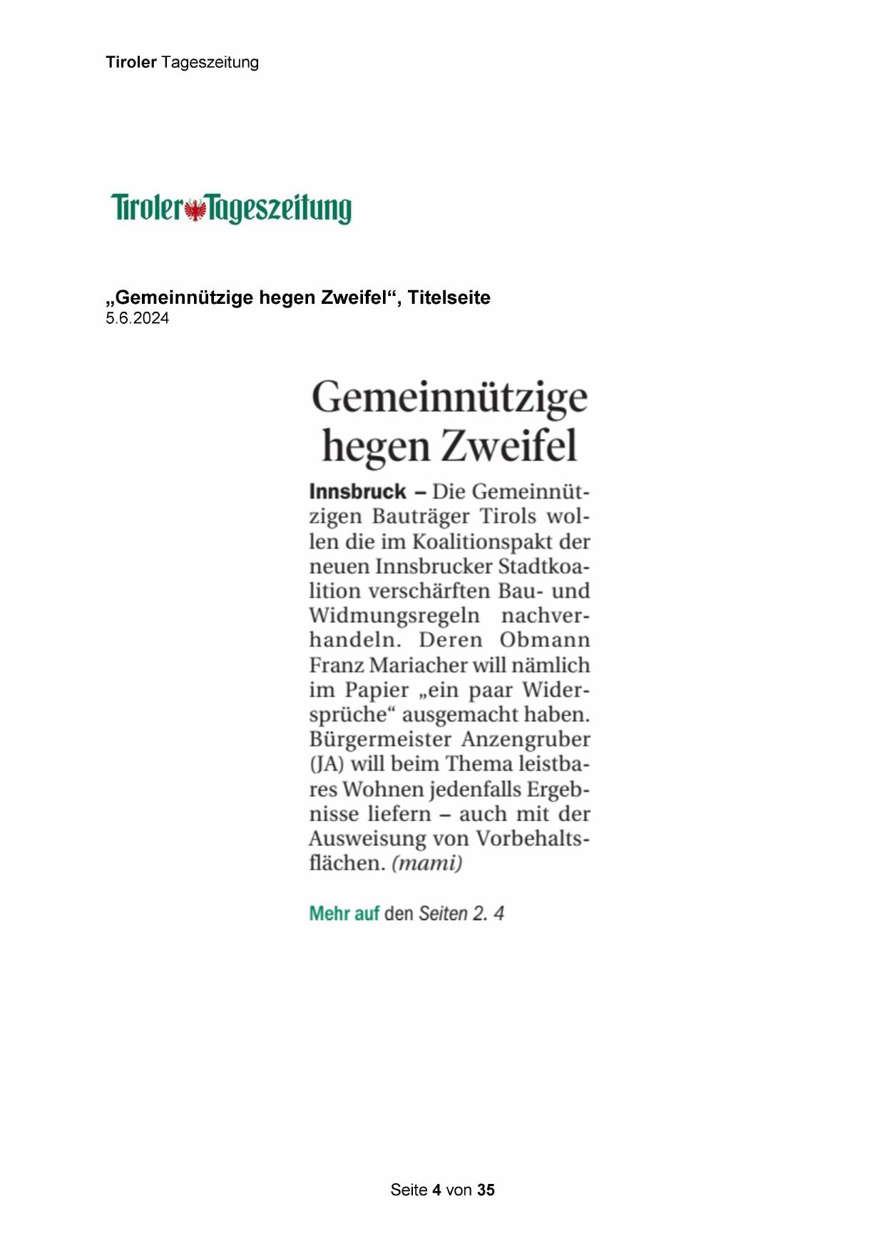 neuen Innsbrucker Stadtkoalition verschärften Bau- und