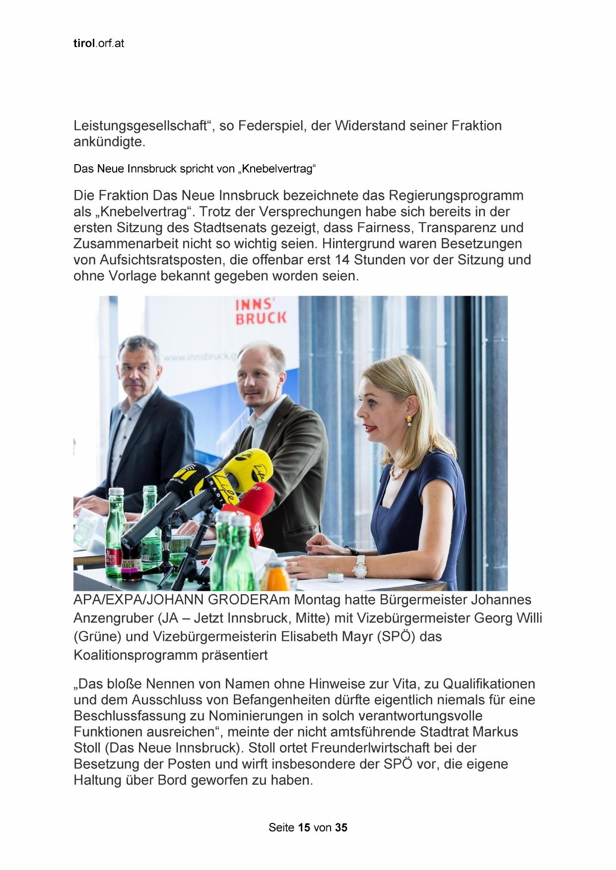Stoll (Das Neue Innsbruck). Stoll ortet Freunderlwirtschaft bei der