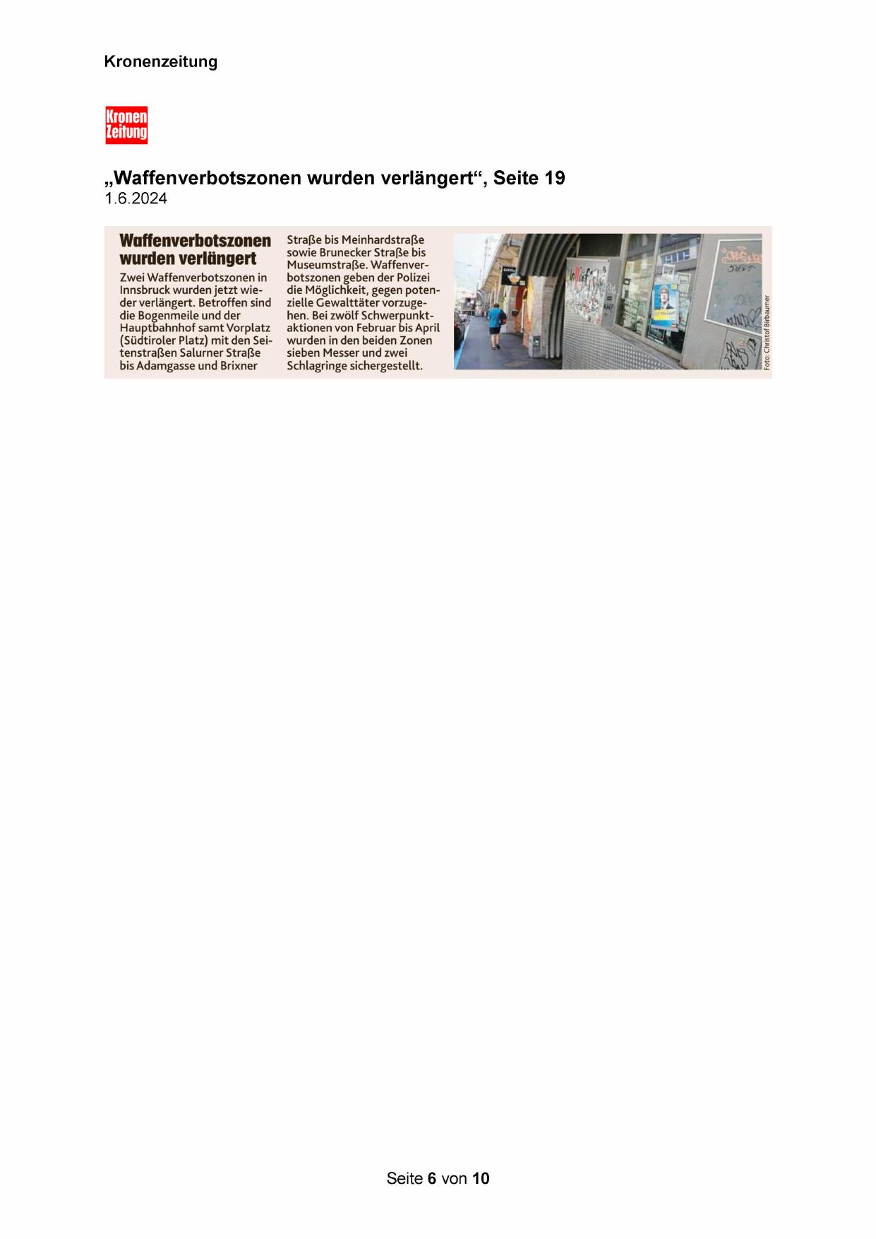 „Waffenverbotszonen wurden verlängert“, Seite 19