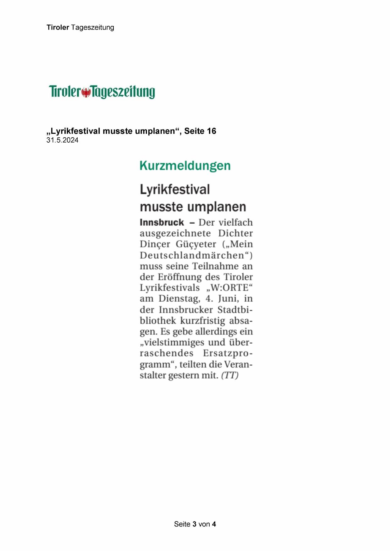 der Innsbrucker Stadtbibliothek kurzfristig absagen. Es gebe allerdings ein