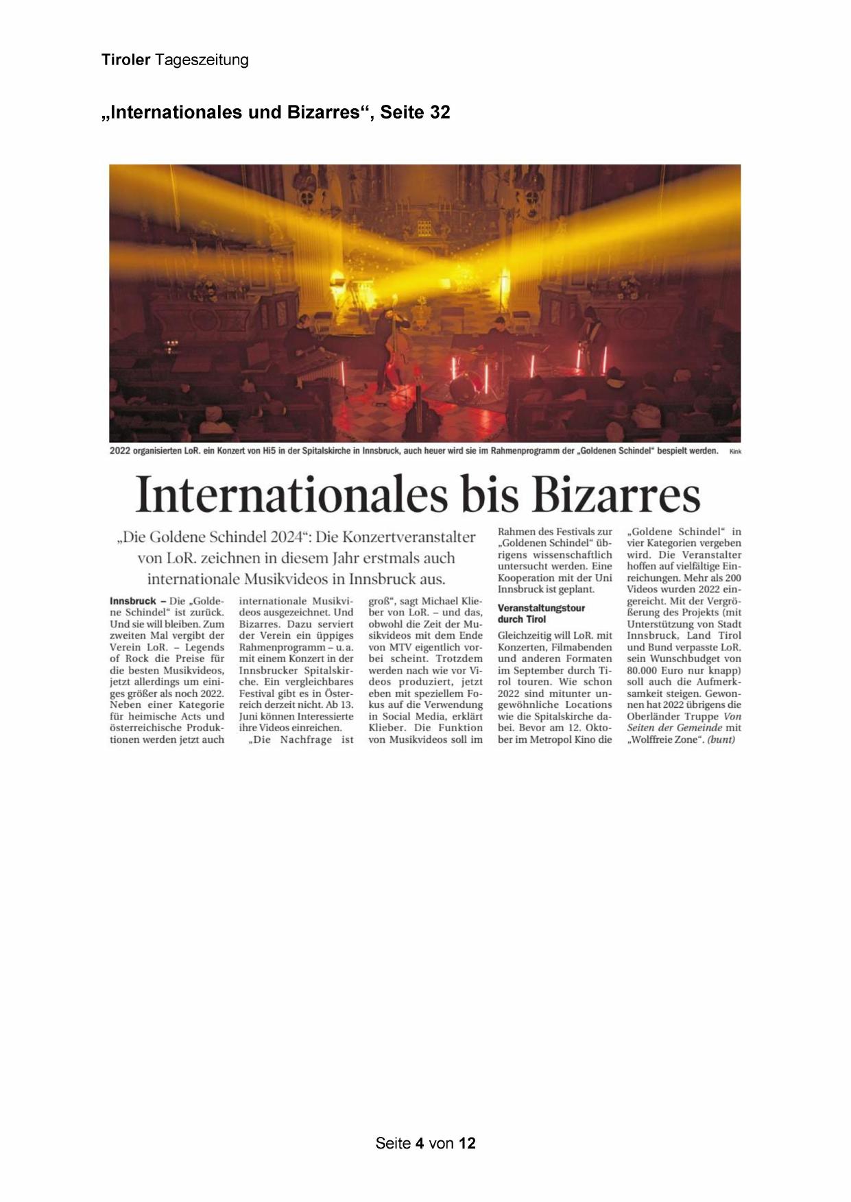 2022 organisierten LoR. ein Konzert von Hi5 in der Spitalskirche in Innsbruck, auch heuer wird sie im Rahmenprogramm der „Goldenen Schindel“ bespielt werden. Kink