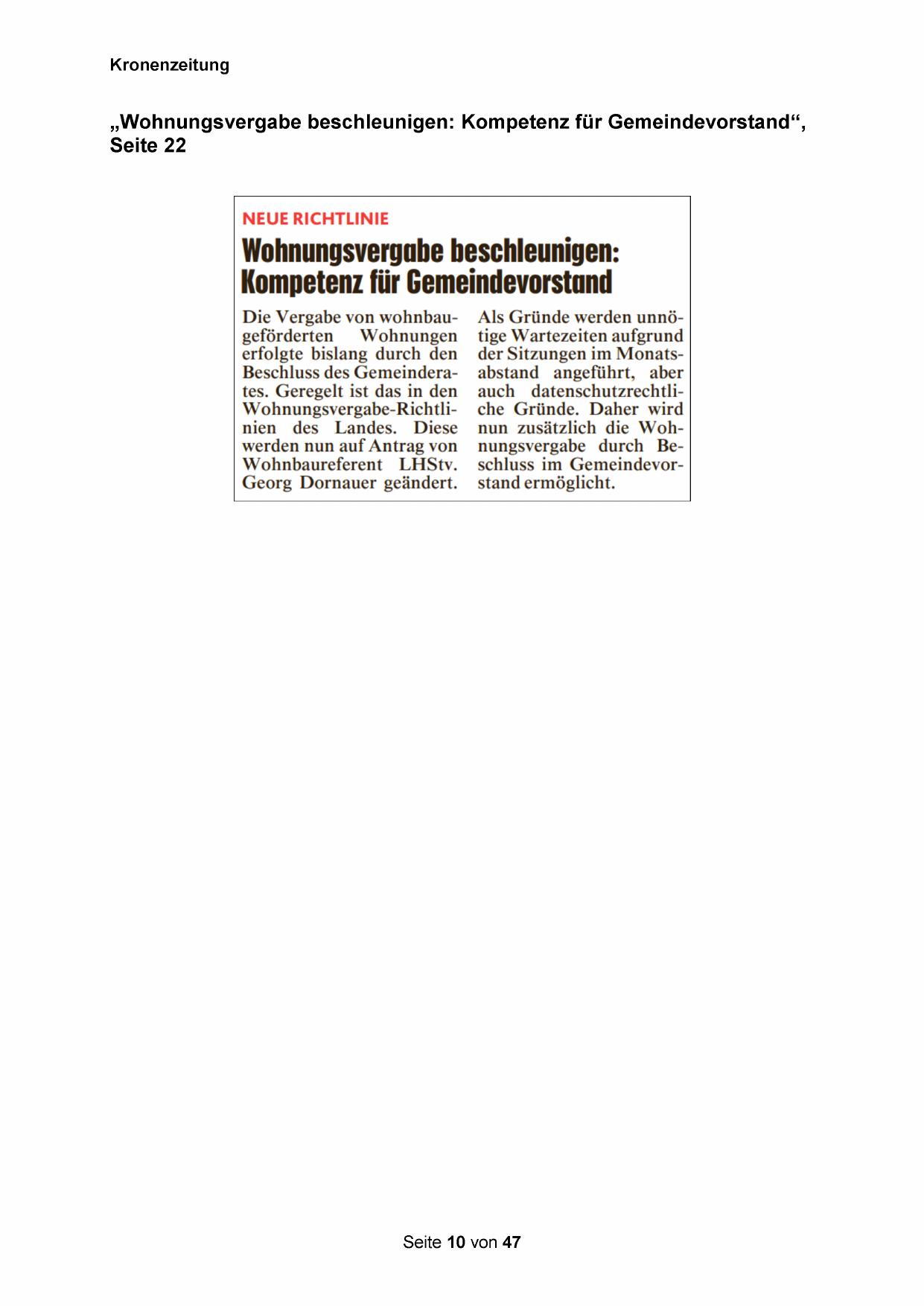 „Wohnungsvergabe beschleunigen: Kompetenz für Gemeindevorstand“,