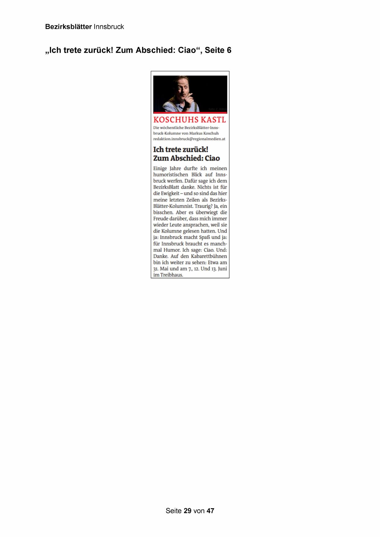 Die wöchentliche BezirksBlätter-Innsbruck-Kolumne von Markus Koschuh