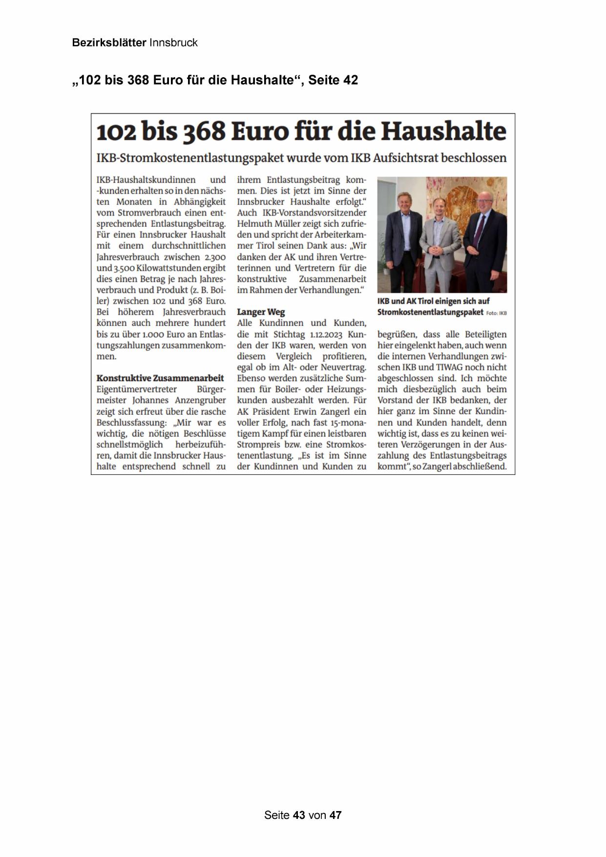 die internen Verhandlungen zwischen IKB und TIWAG noch nicht