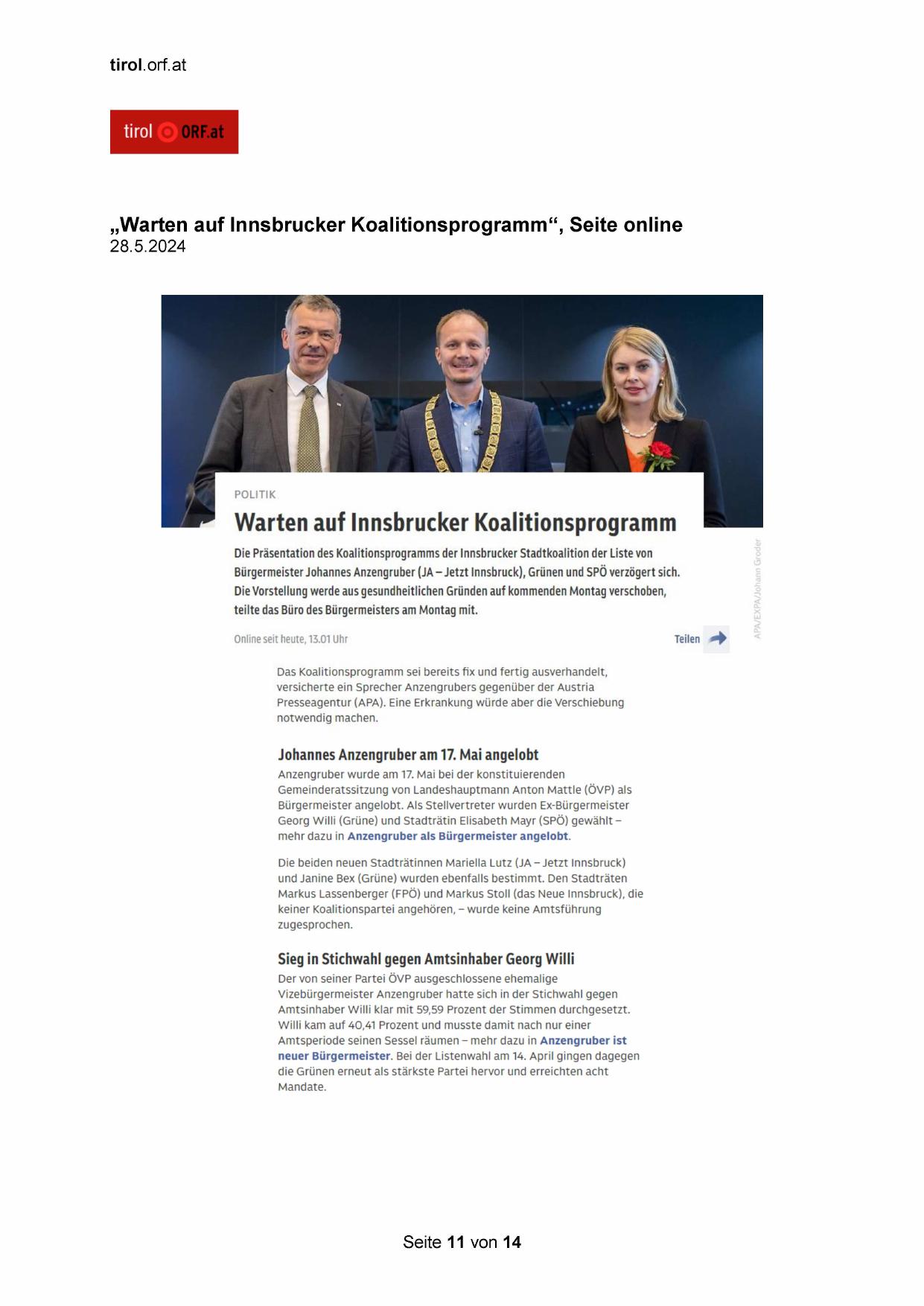 „Warten auf Innsbrucker Koalitionsprogramm“, Seite online