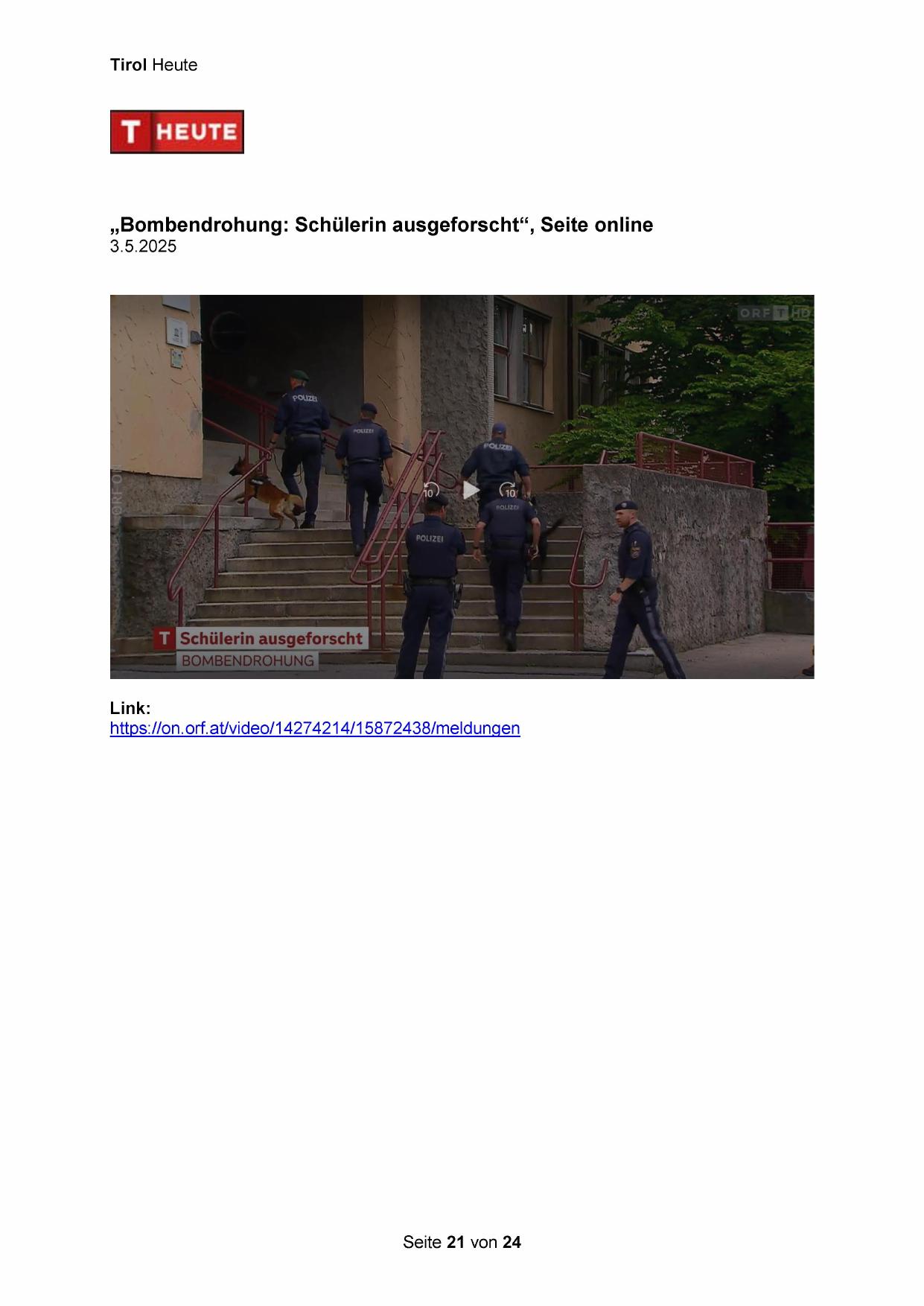 „Bombendrohung: Schülerin ausgeforscht“, Seite online