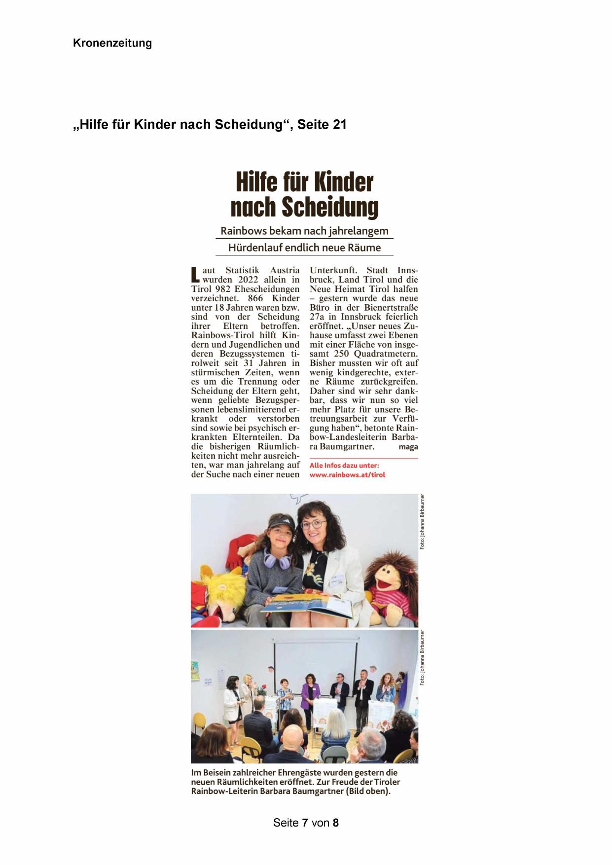 Rainbows-Tirol hilft Kindern und Jugendlichen und