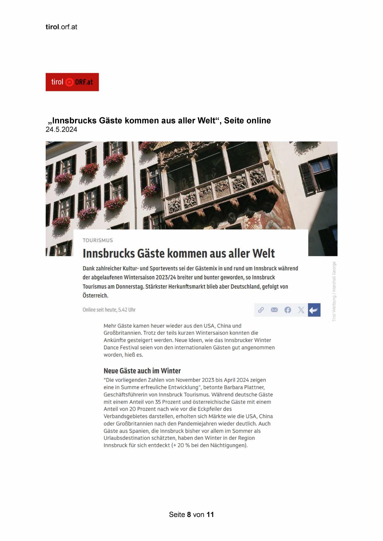 „Innsbrucks Gäste kommen aus aller Welt“, Seite online
