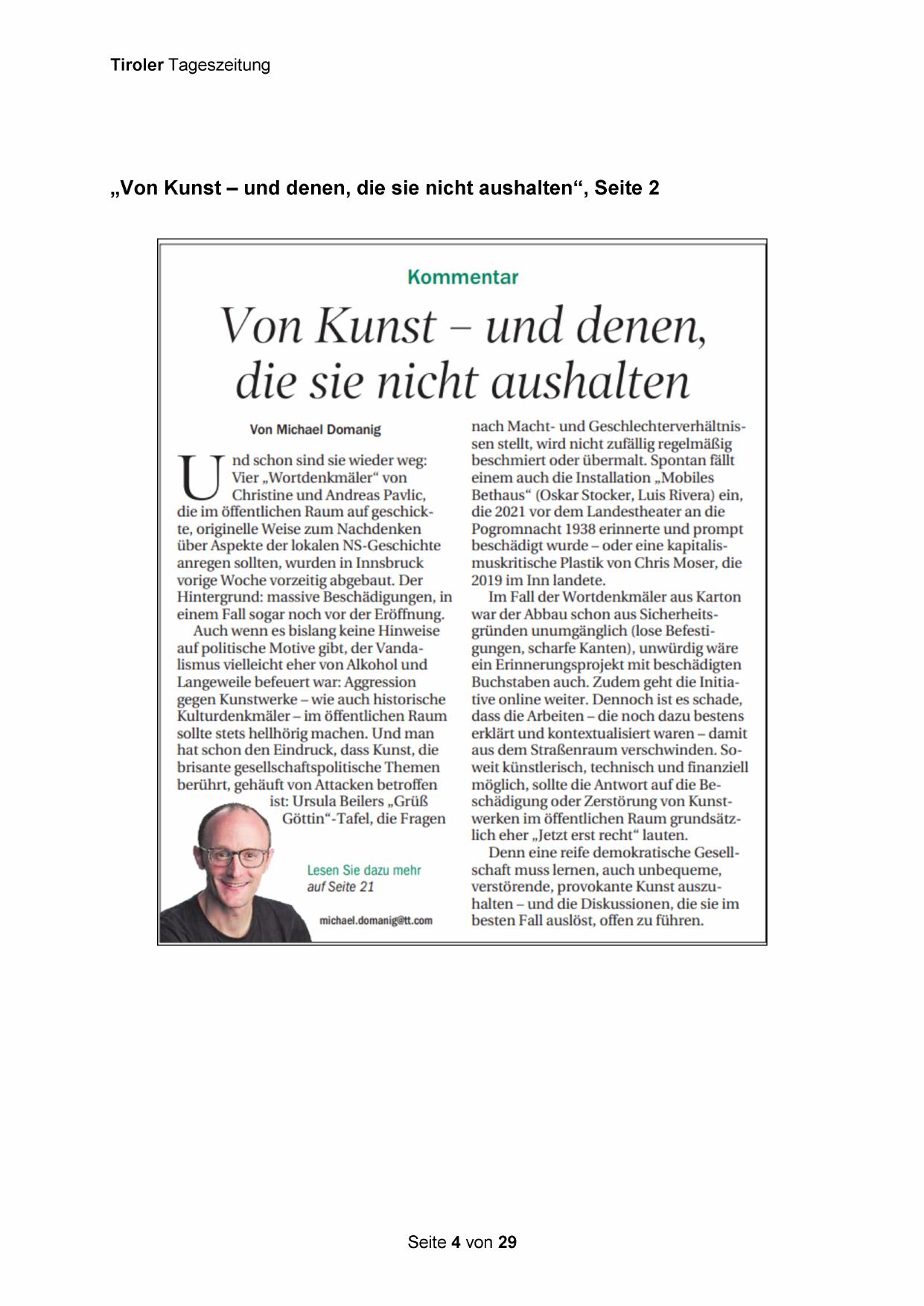 möglich, sollte die Antwort auf die Beschädigung oder Zerstörung von Kunstwerken im öffentlichen Raum grundsätzlich eher „Jetzt erst recht“ lauten.