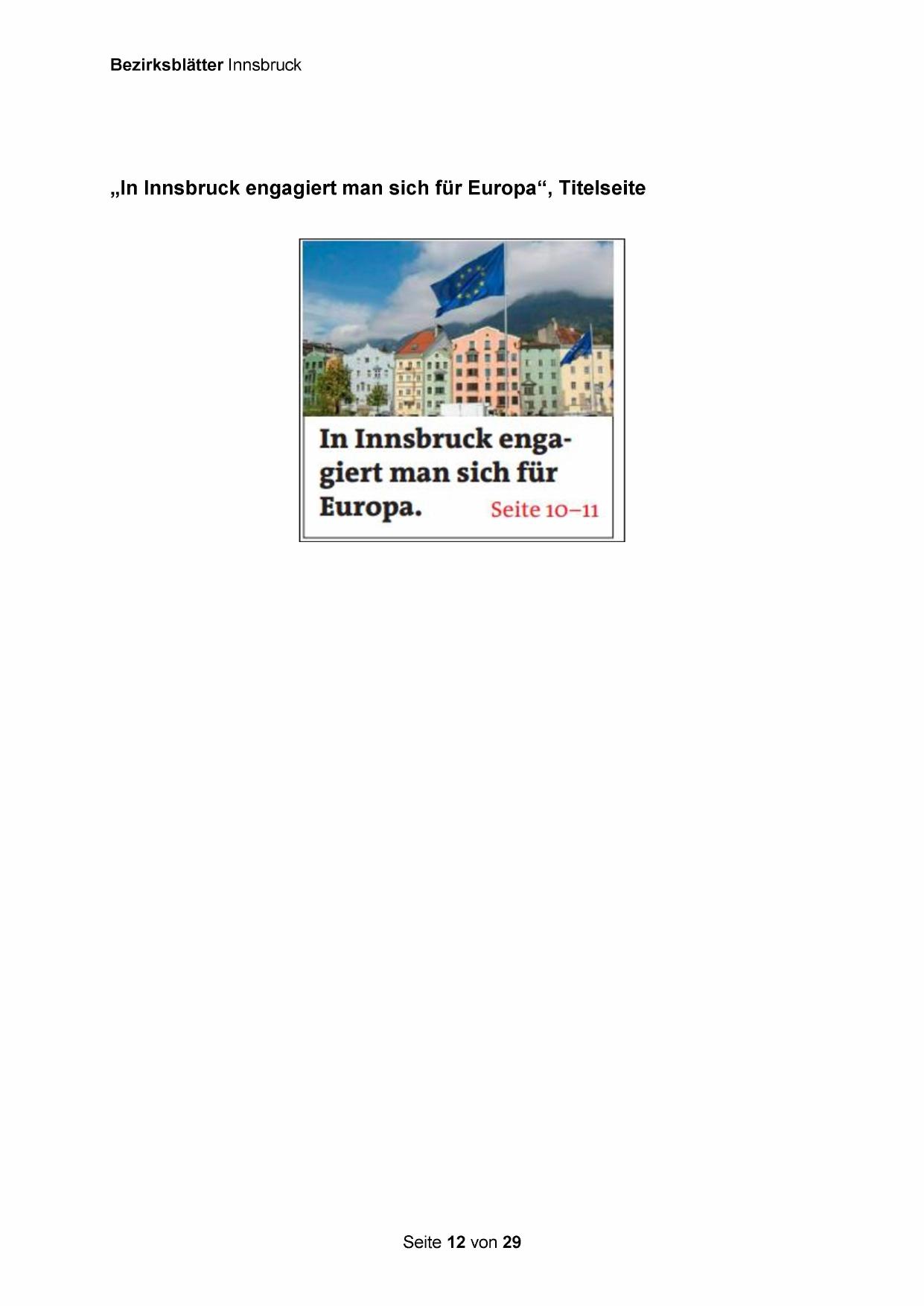 „In Innsbruck engagiert man sich für Europa“, Titelseite