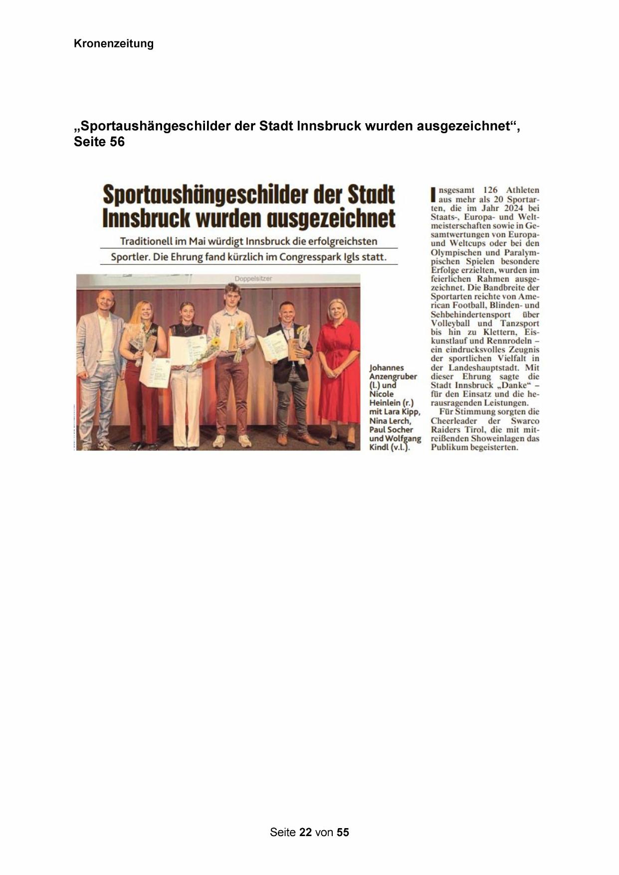 „Sportaushängeschilder der Stadt Innsbruck wurden ausgezeichnet“,
