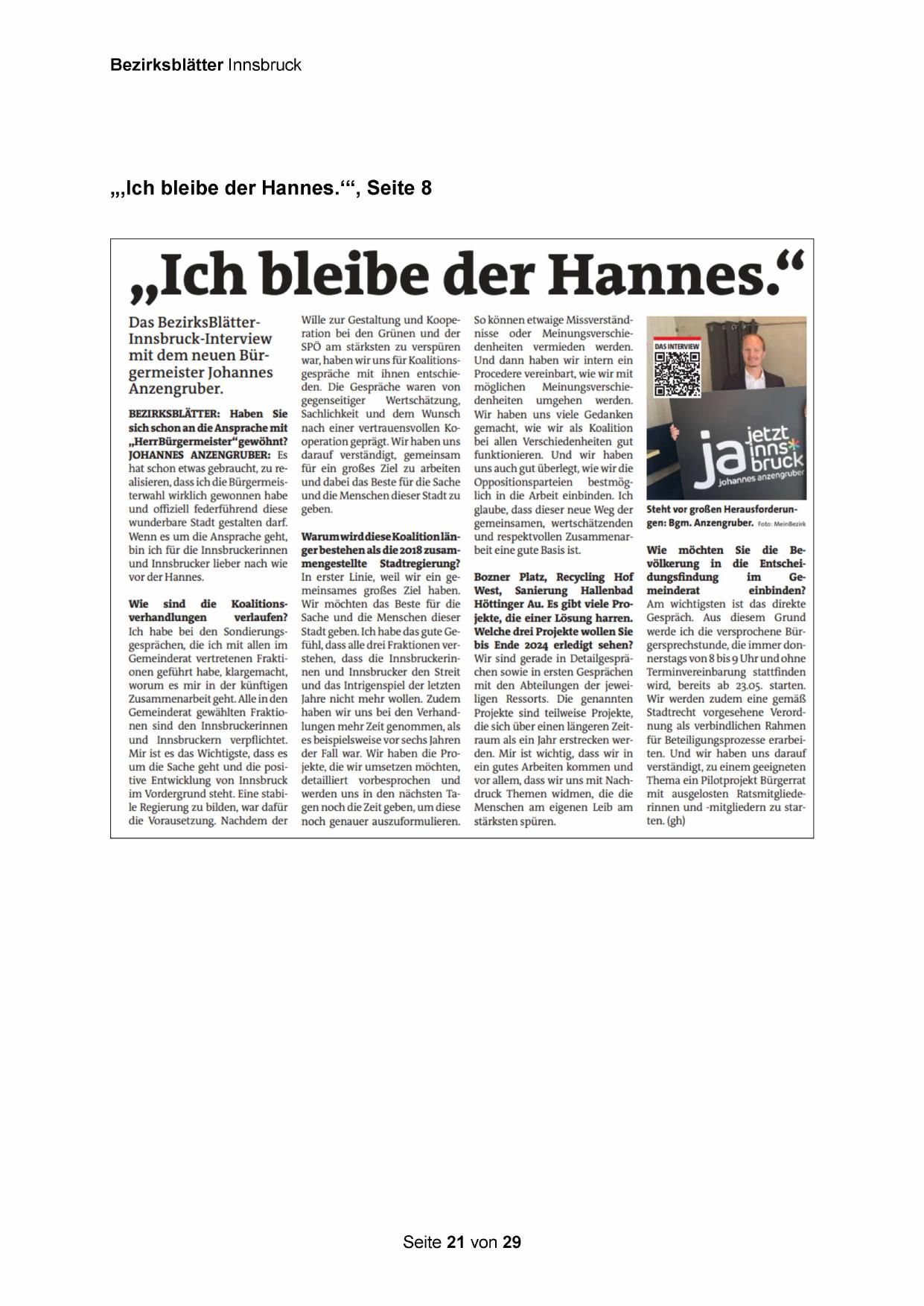 um die Sache geht und die positive Entwicklung von Innsbruck