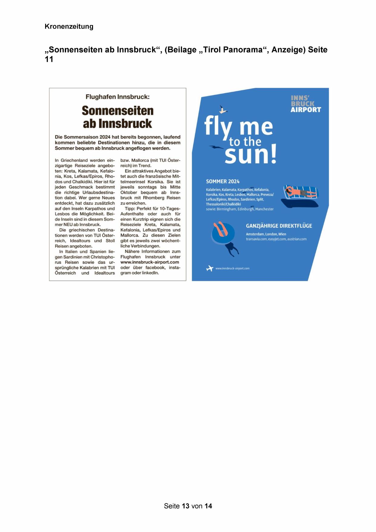„Sonnenseiten ab Innsbruck“, (Beilage „Tirol Panorama“, Anzeige) Seite