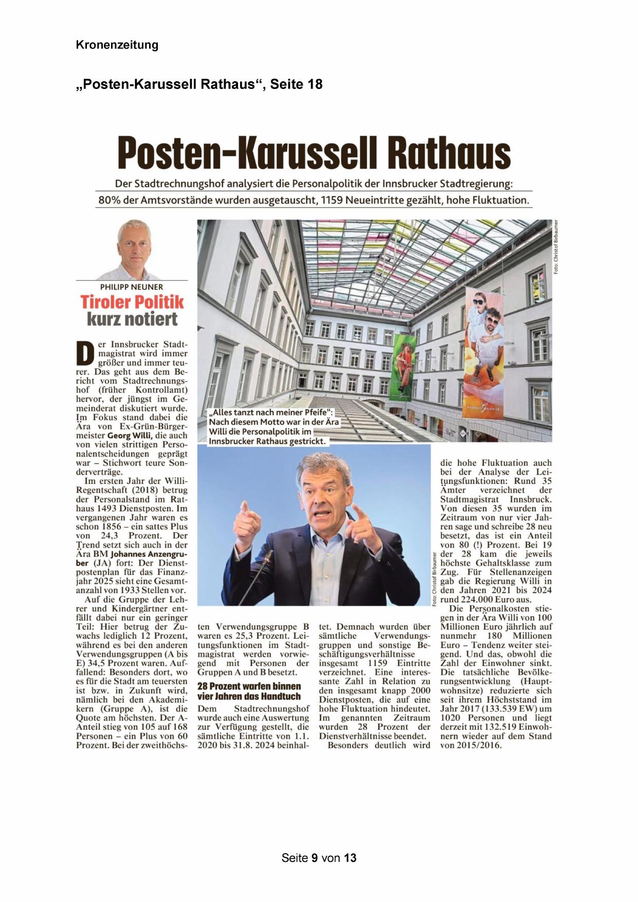 Der Stadtrechnungshof analysiert die Personalpolitik der Innsbrucker Stadtregierung: