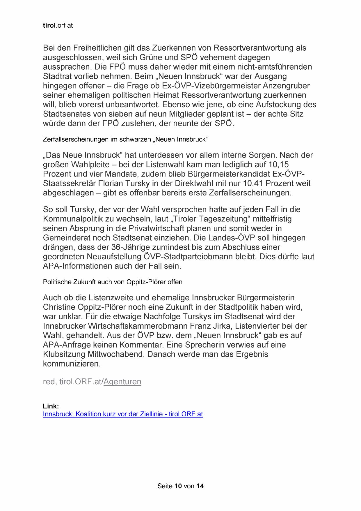 Wahl, gehandelt. Aus der ÖVP bzw. dem „Neuen Innsbruck“ gab es auf