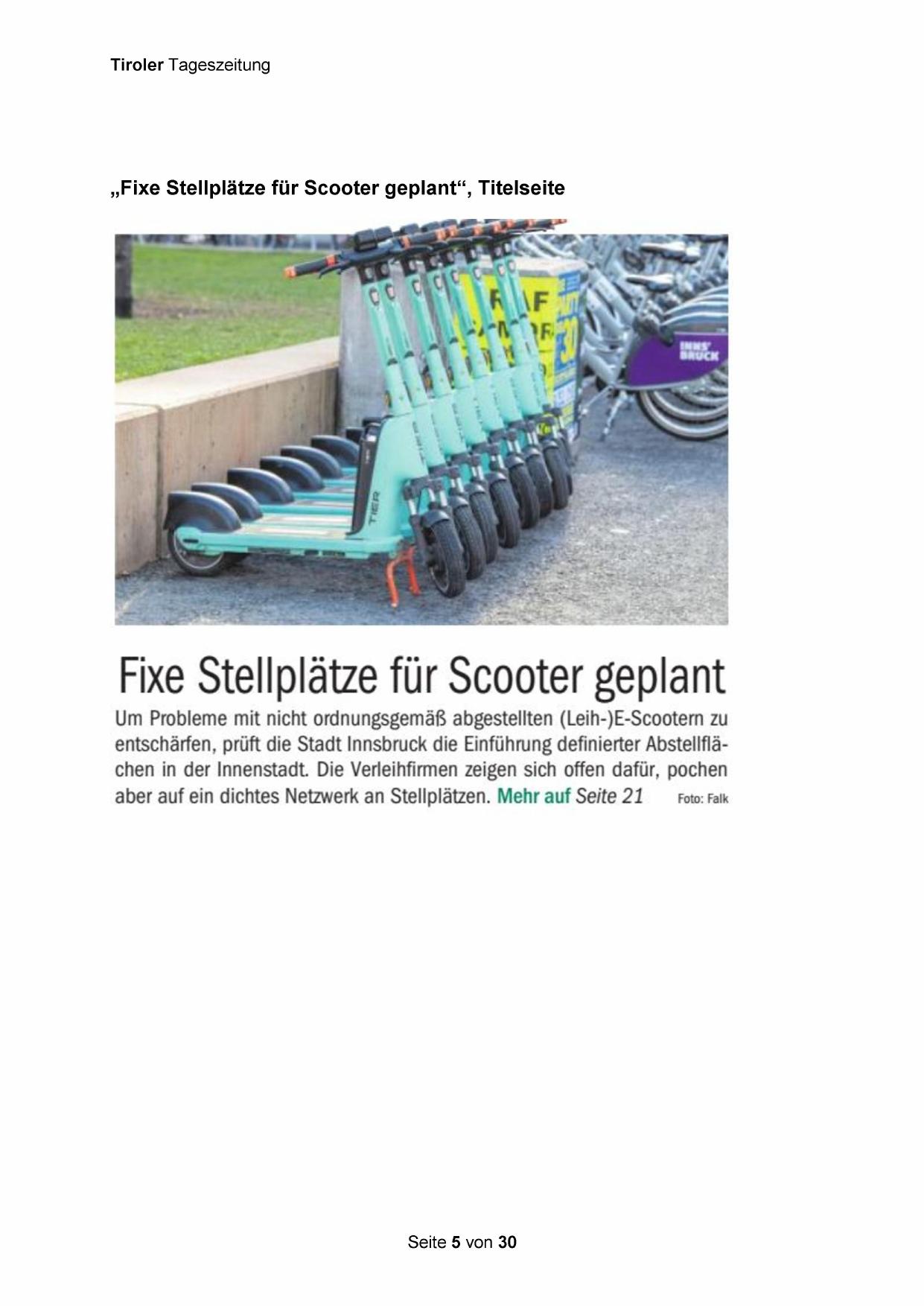 entschärfen, prüft die Stadt Innsbruck die Einführung definierter Abstellflächen in der Innenstadt. Die Verleihfirmen zeigen sich offen dafür, pochen