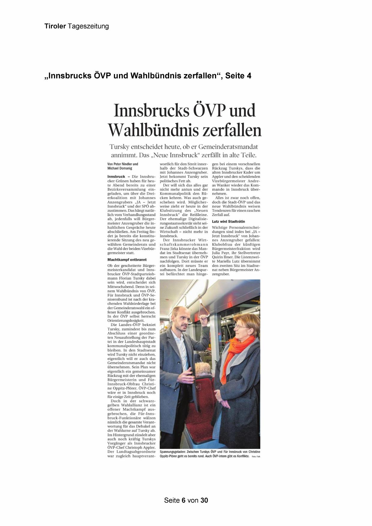 „Innsbrucks ÖVP und Wahlbündnis zerfallen“, Seite 4