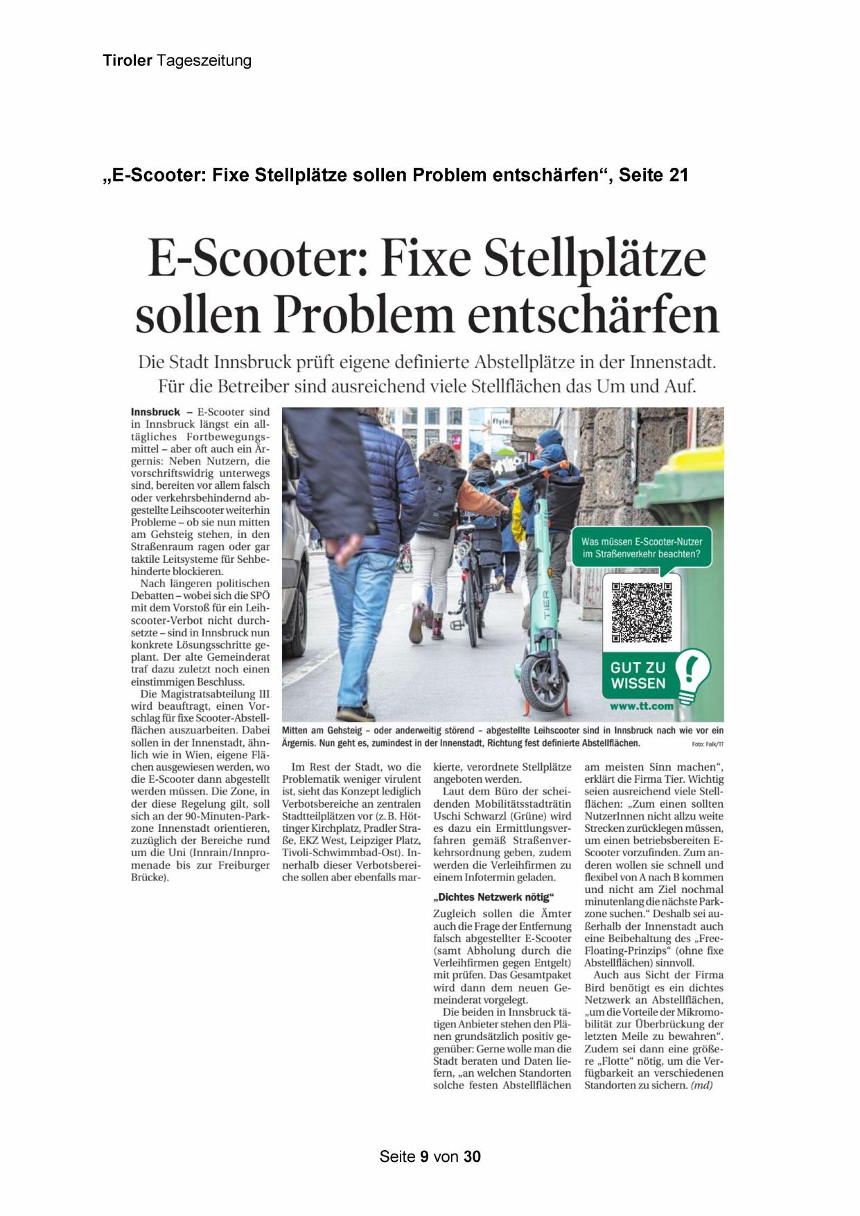 „E-Scooter: Fixe Stellplätze sollen Problem entschärfen“, Seite 21