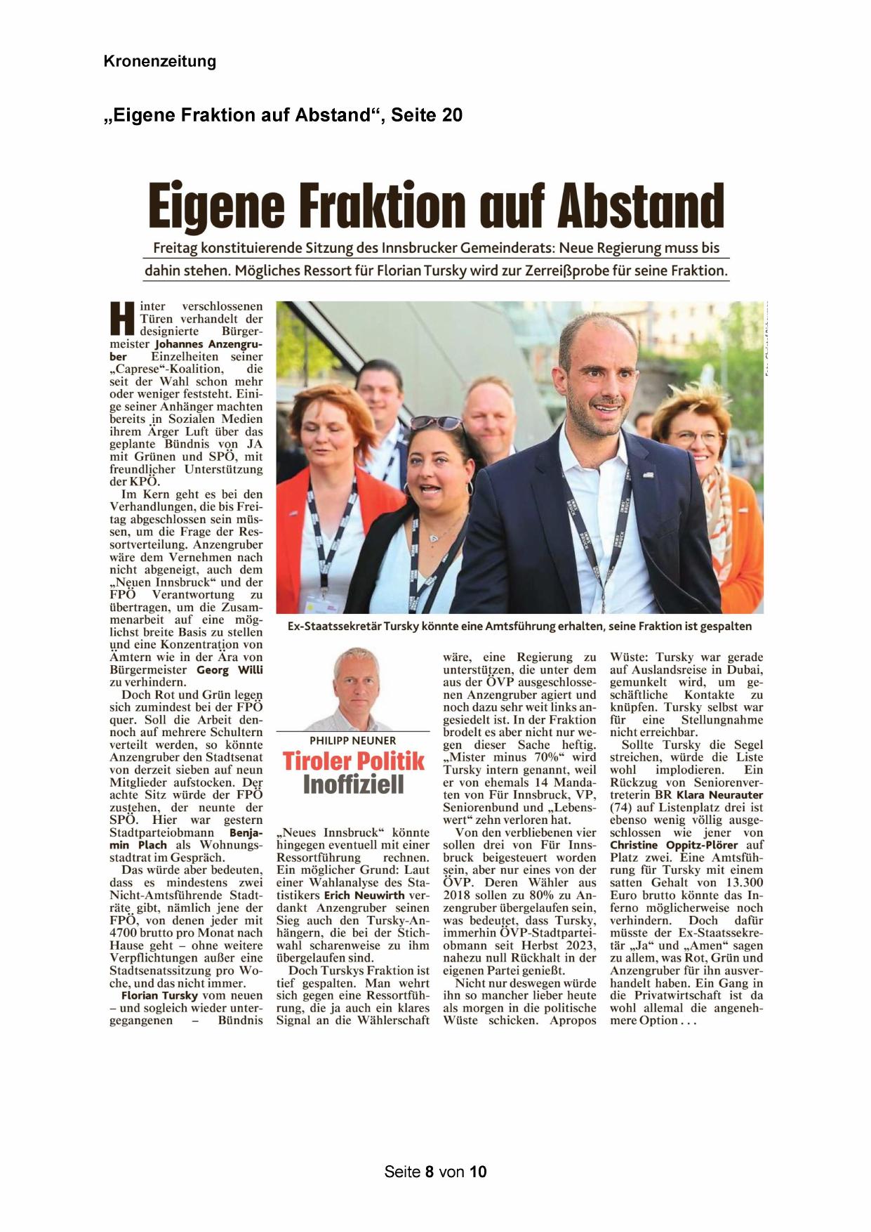 er von ehemals 14 Mandaten von Für Innsbruck, VP,