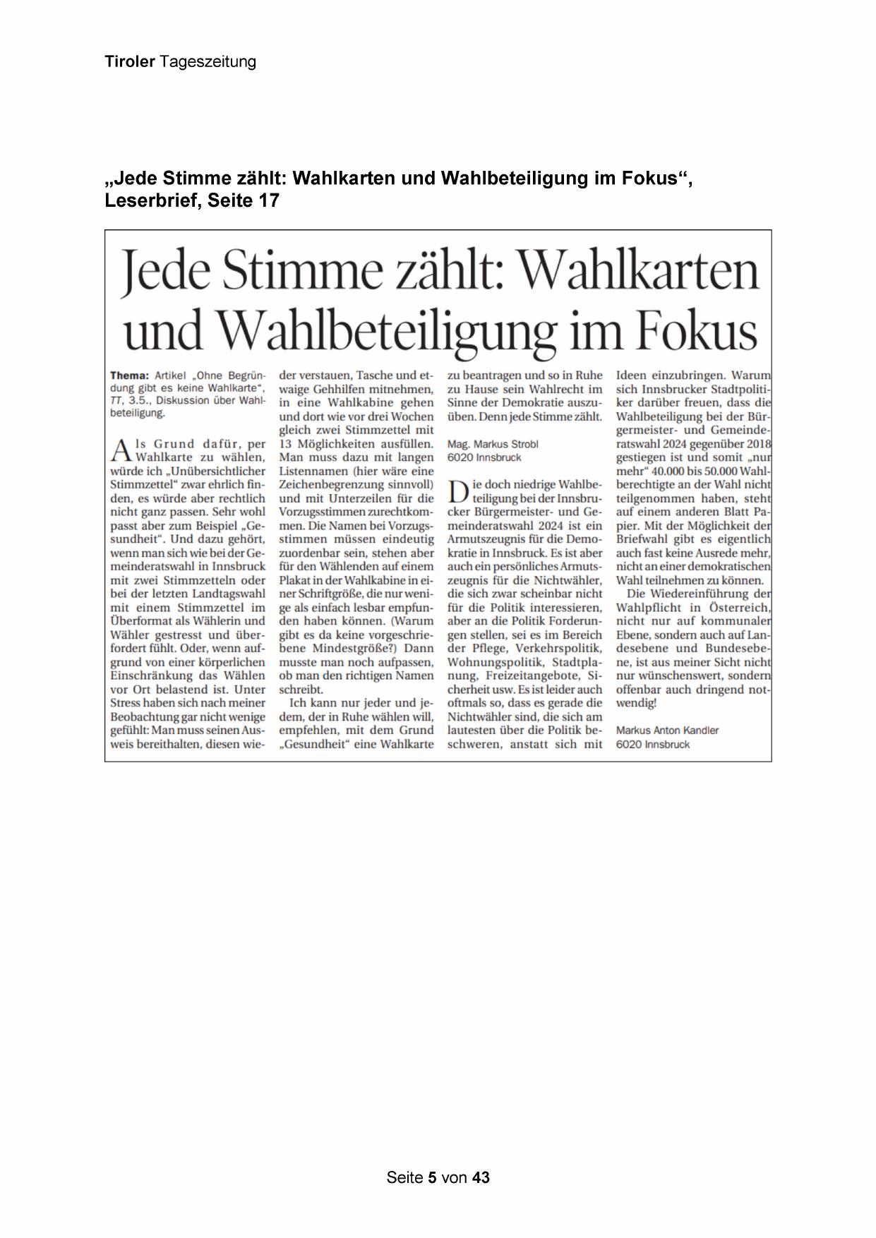 teiligung bei der Innsbrucker Bürgermeister- und Gemeinderatswahl 2024 ist ein
