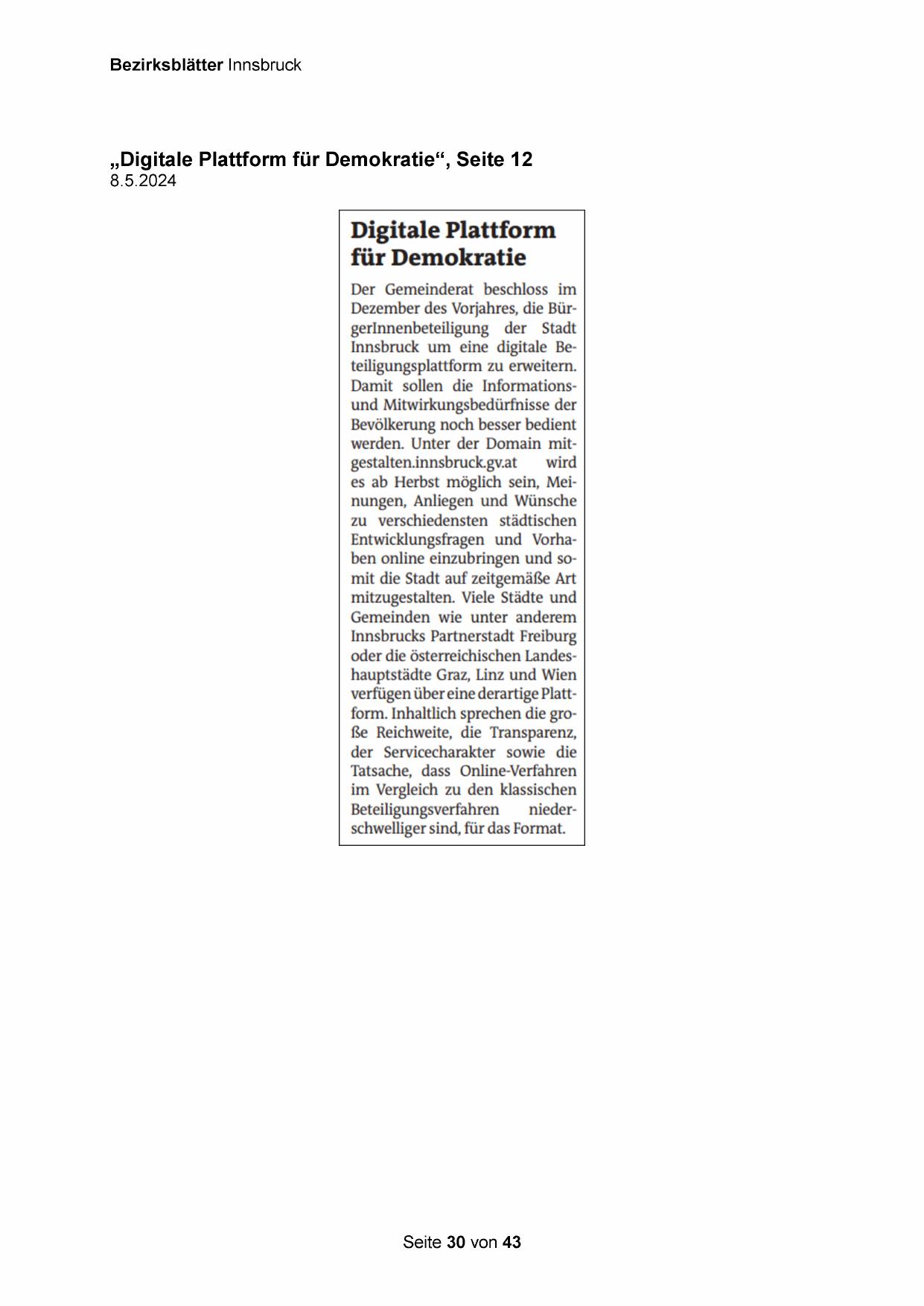 Innsbruck um eine digitale Beteiligungsplattform zu erweitern.