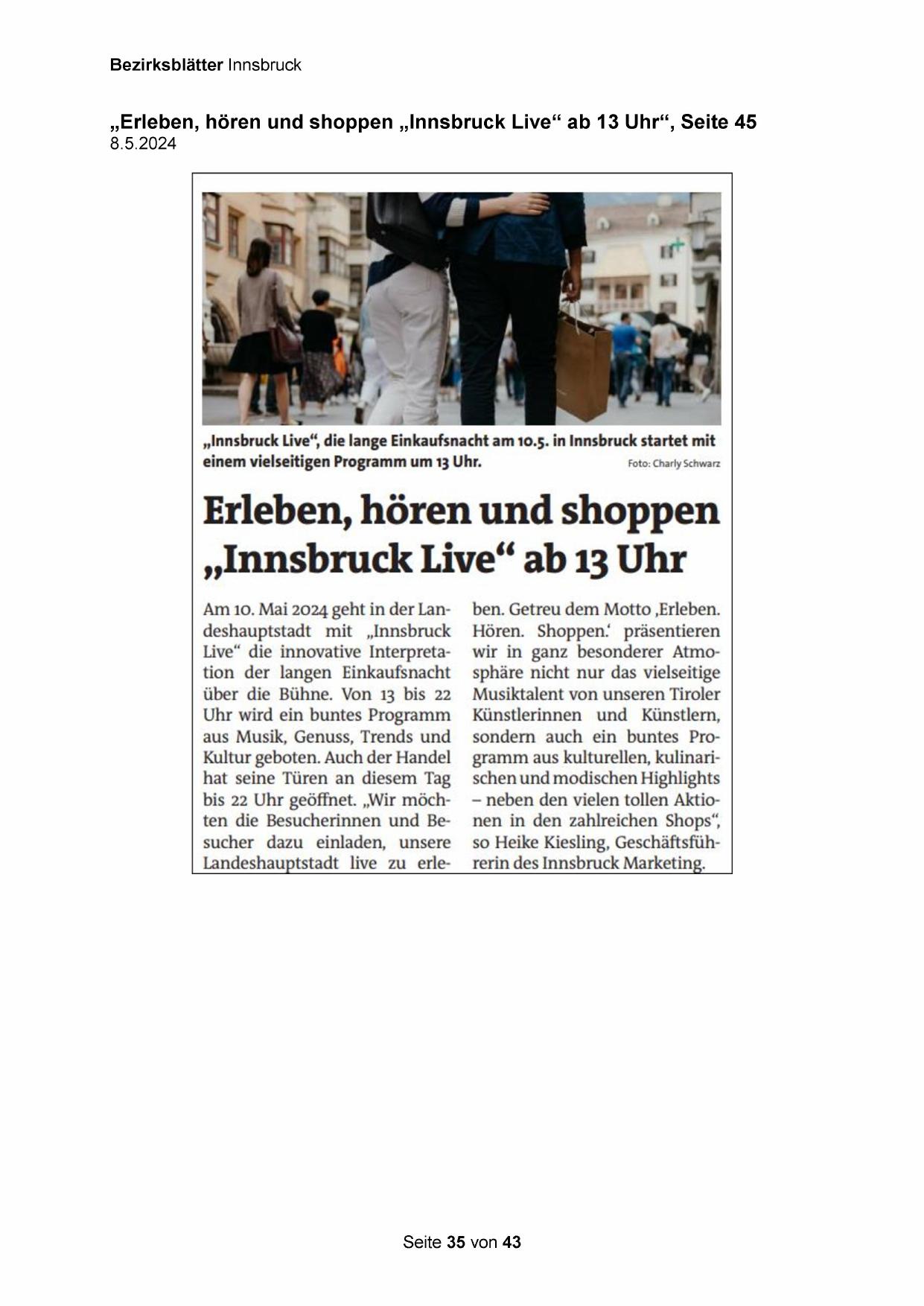 „Erleben, hören und shoppen „Innsbruck Live“ ab 13 Uhr“, Seite 45