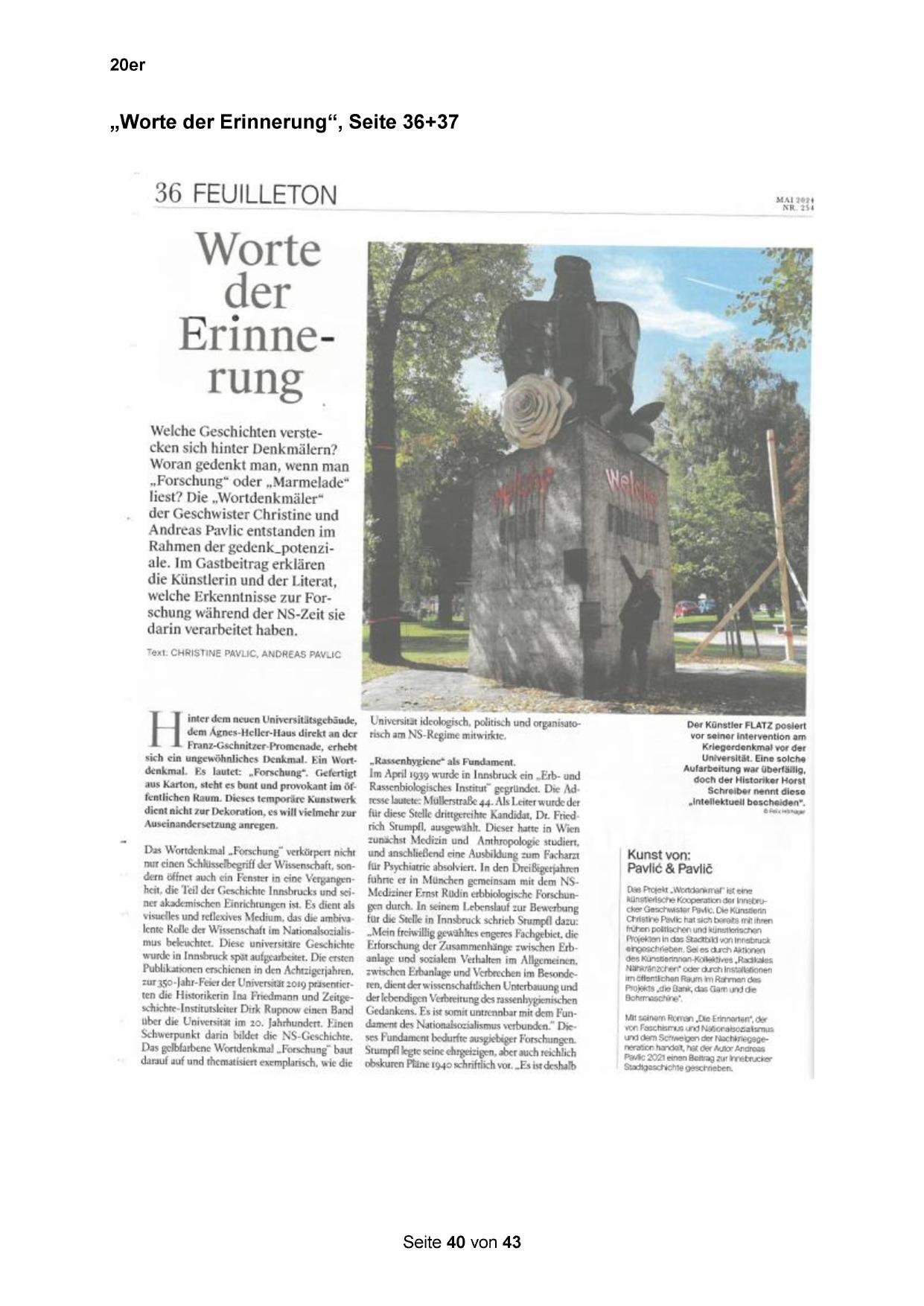 sich ein ungewöhnliches Denkmal. Ein Wortdenkmal. Es lautet: „Forschung“. Gefertigt