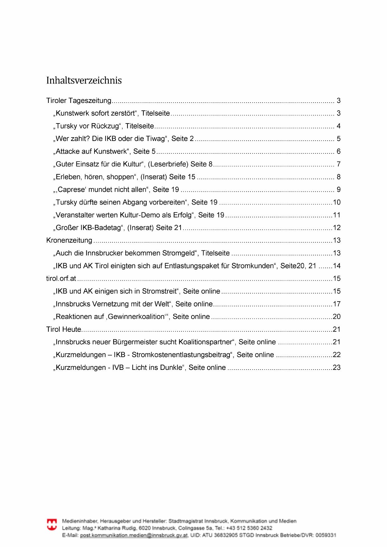 „IKB und AK Tirol einigten sich auf Entlastungspaket für Stromkunden“, Seite20, 21 ....... 14