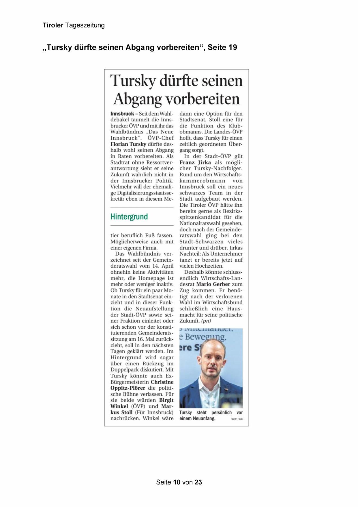 „Tursky dürfte seinen Abgang vorbereiten“, Seite 19
