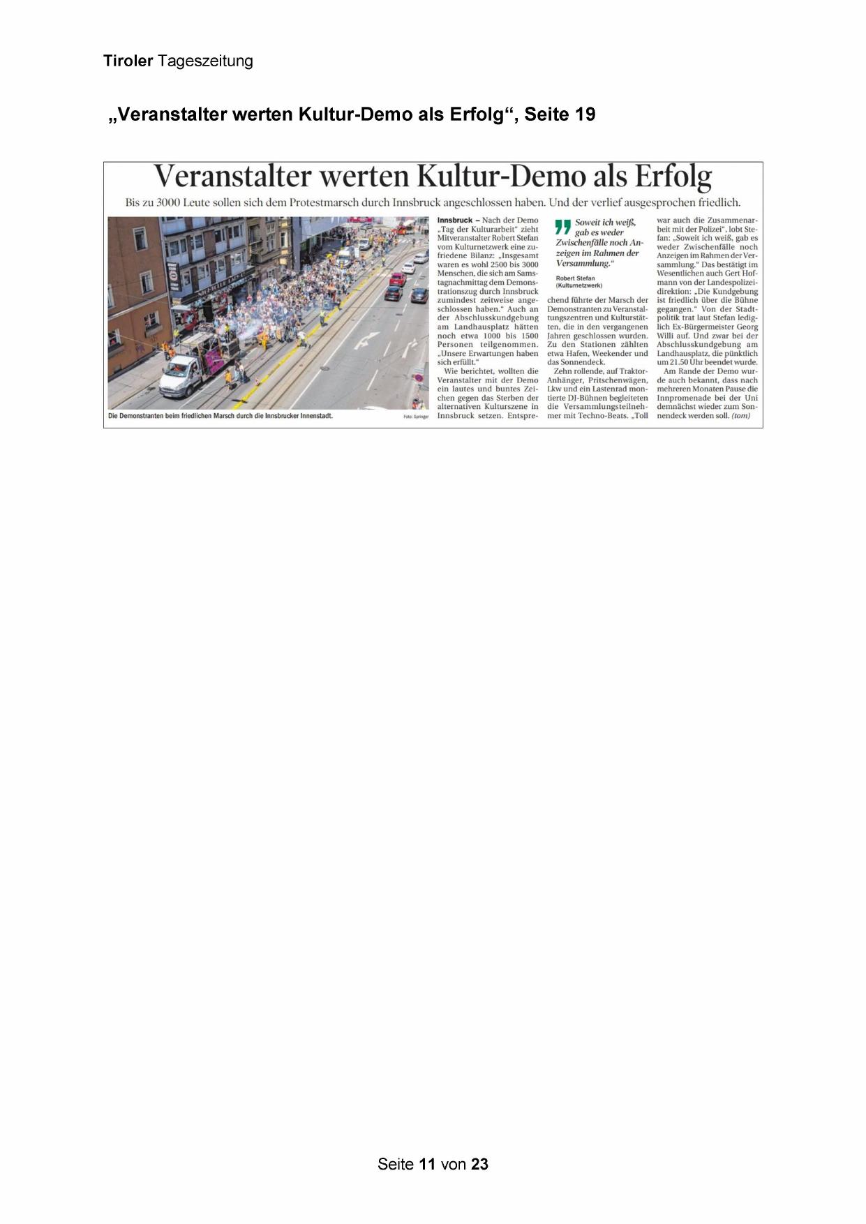 „Veranstalter werten Kultur-Demo als Erfolg“, Seite 19