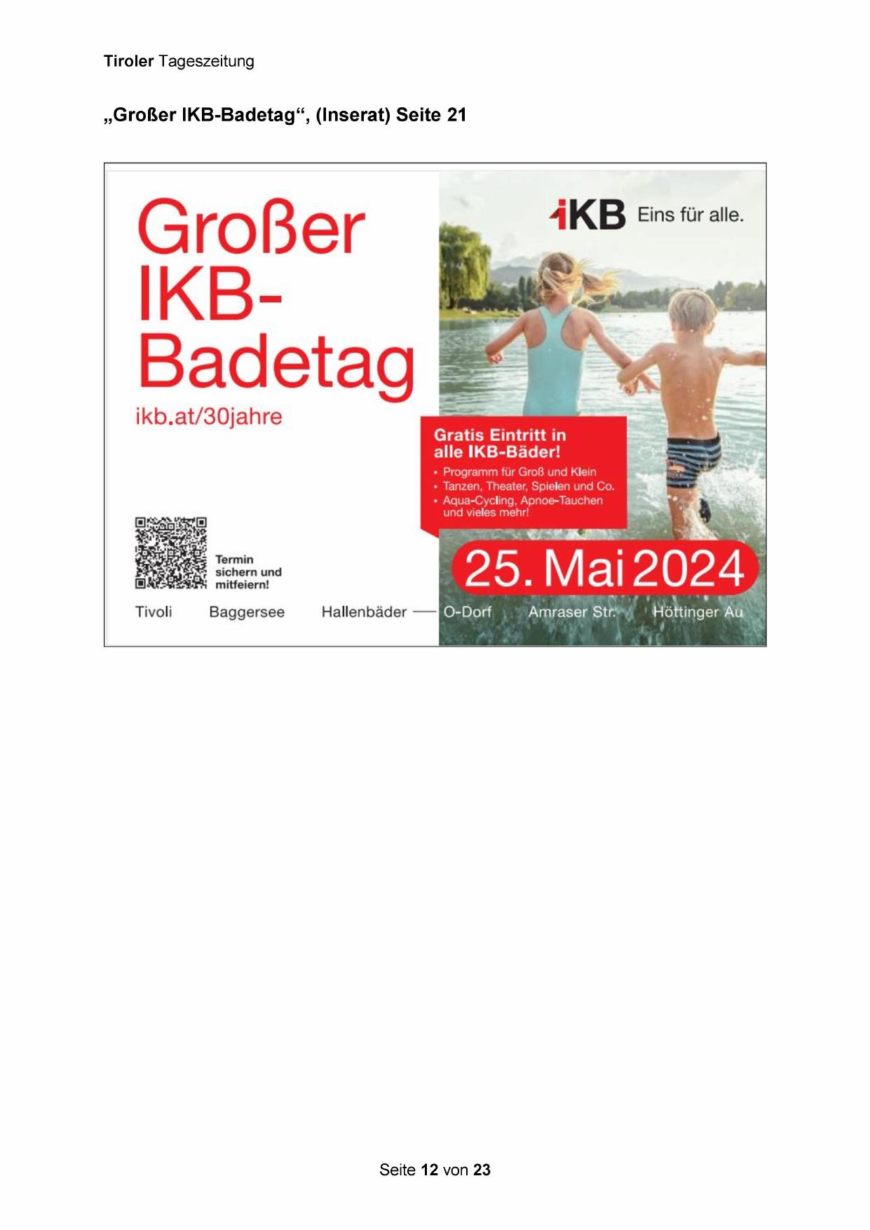 „Großer IKB-Badetag“, (Inserat) Seite 21