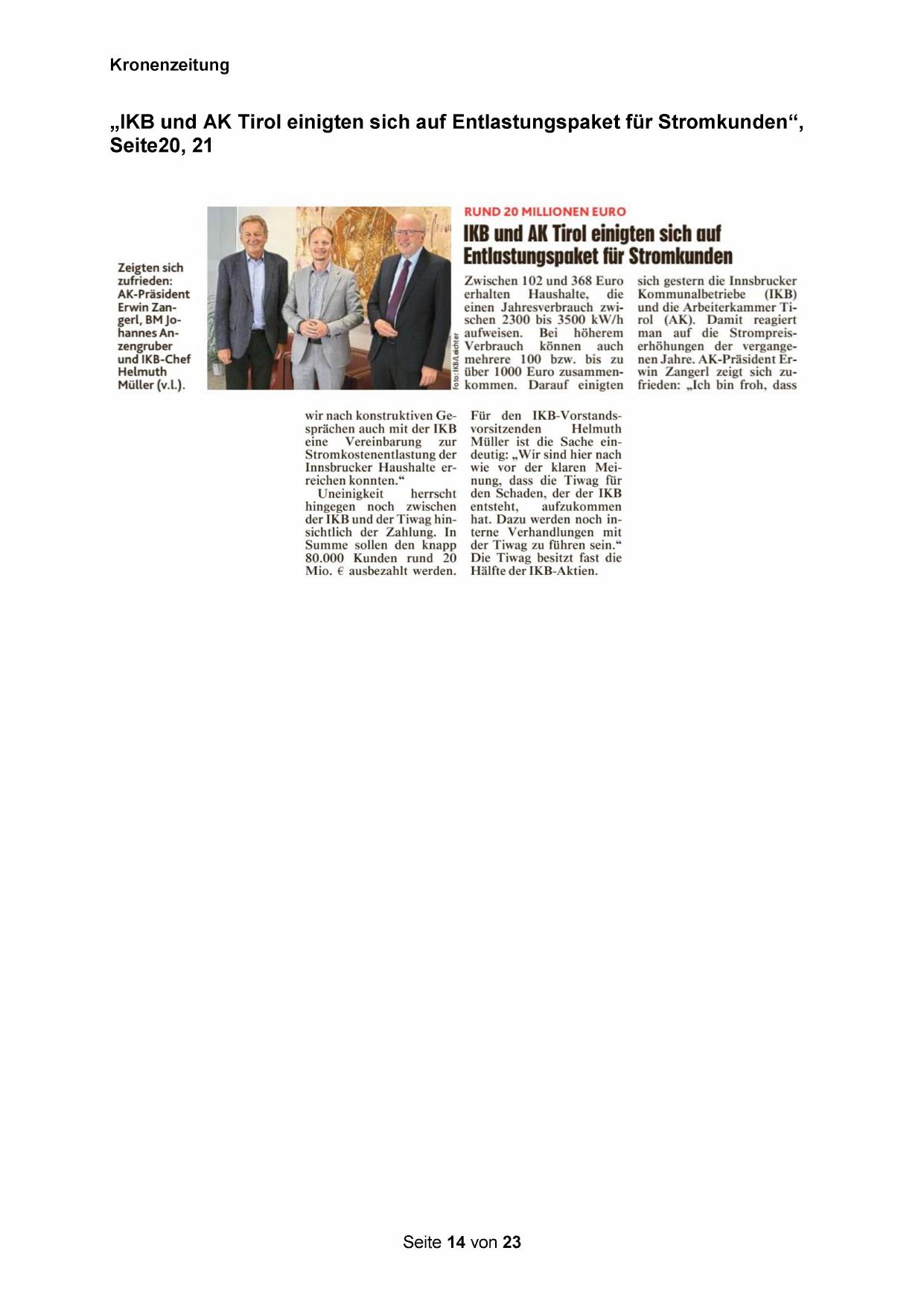 „IKB und AK Tirol einigten sich auf Entlastungspaket für Stromkunden“,