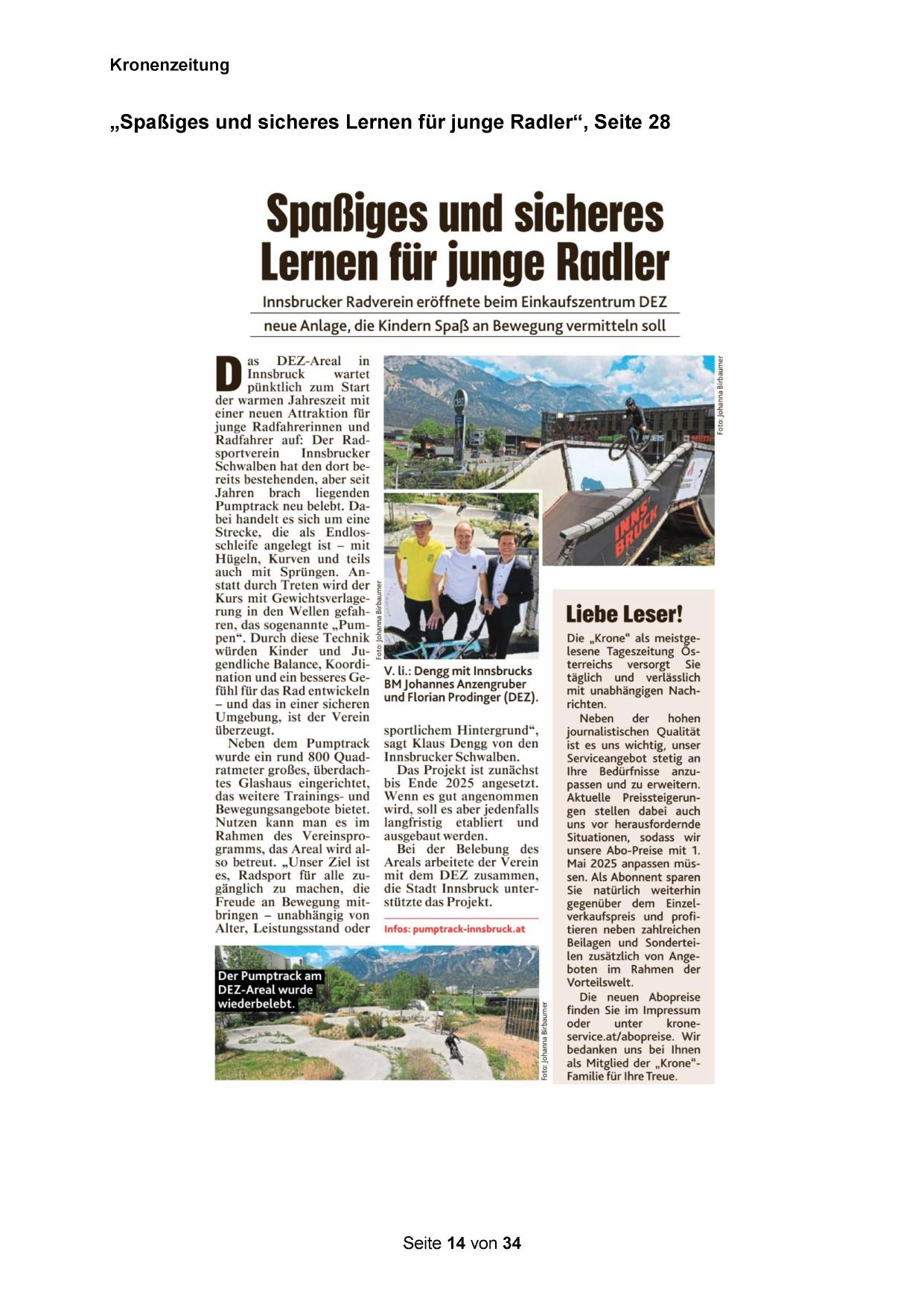 Innsbrucker Radverein eröffnete beim Einkaufszentrum DEZ