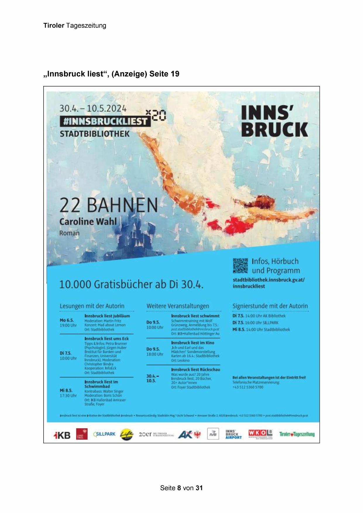 „Innsbruck liest‘“, (Anzeige) Seite 19