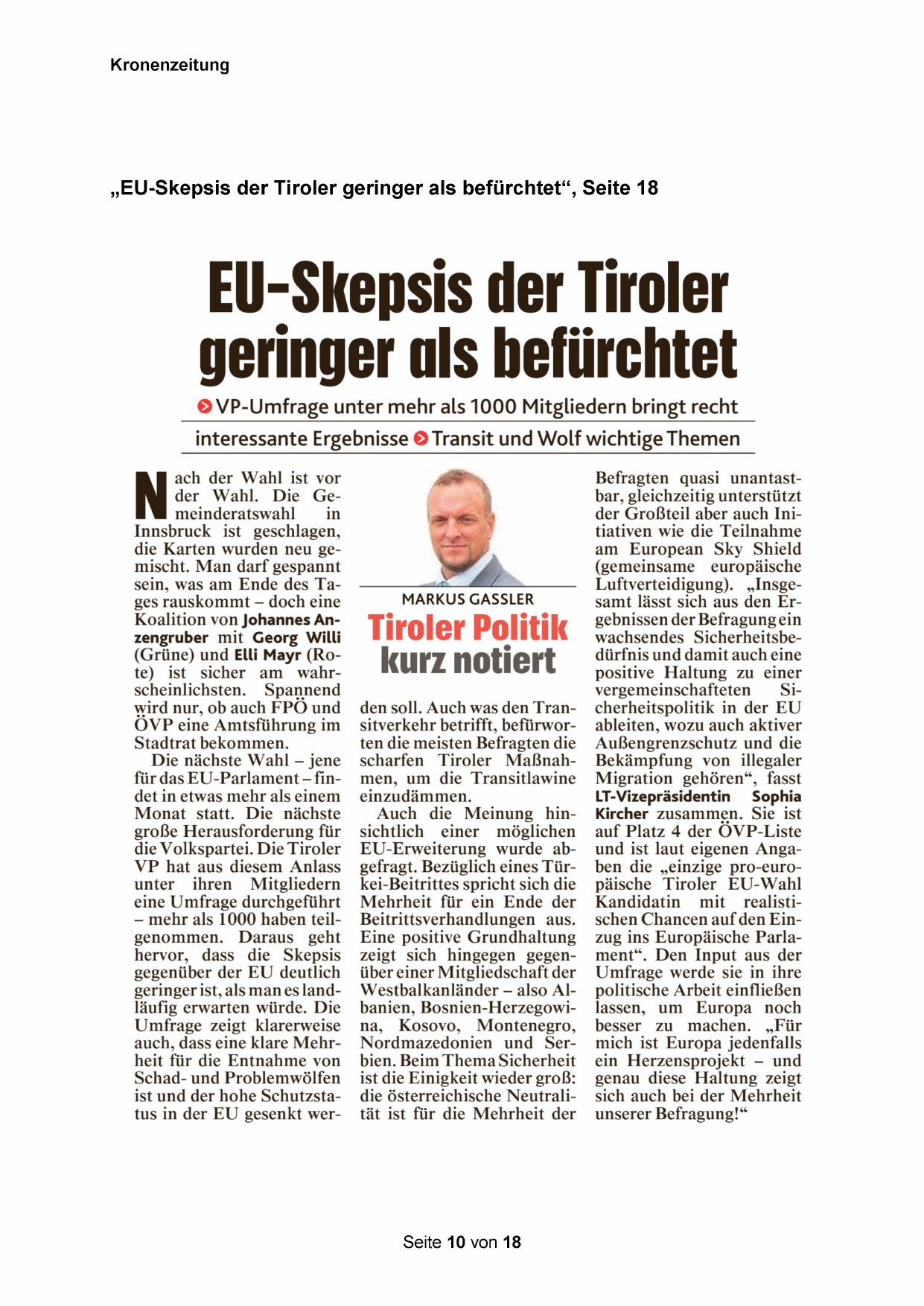 „EU-Skepsis der Tiroler geringer als befürchtet‘“, Seite 18
