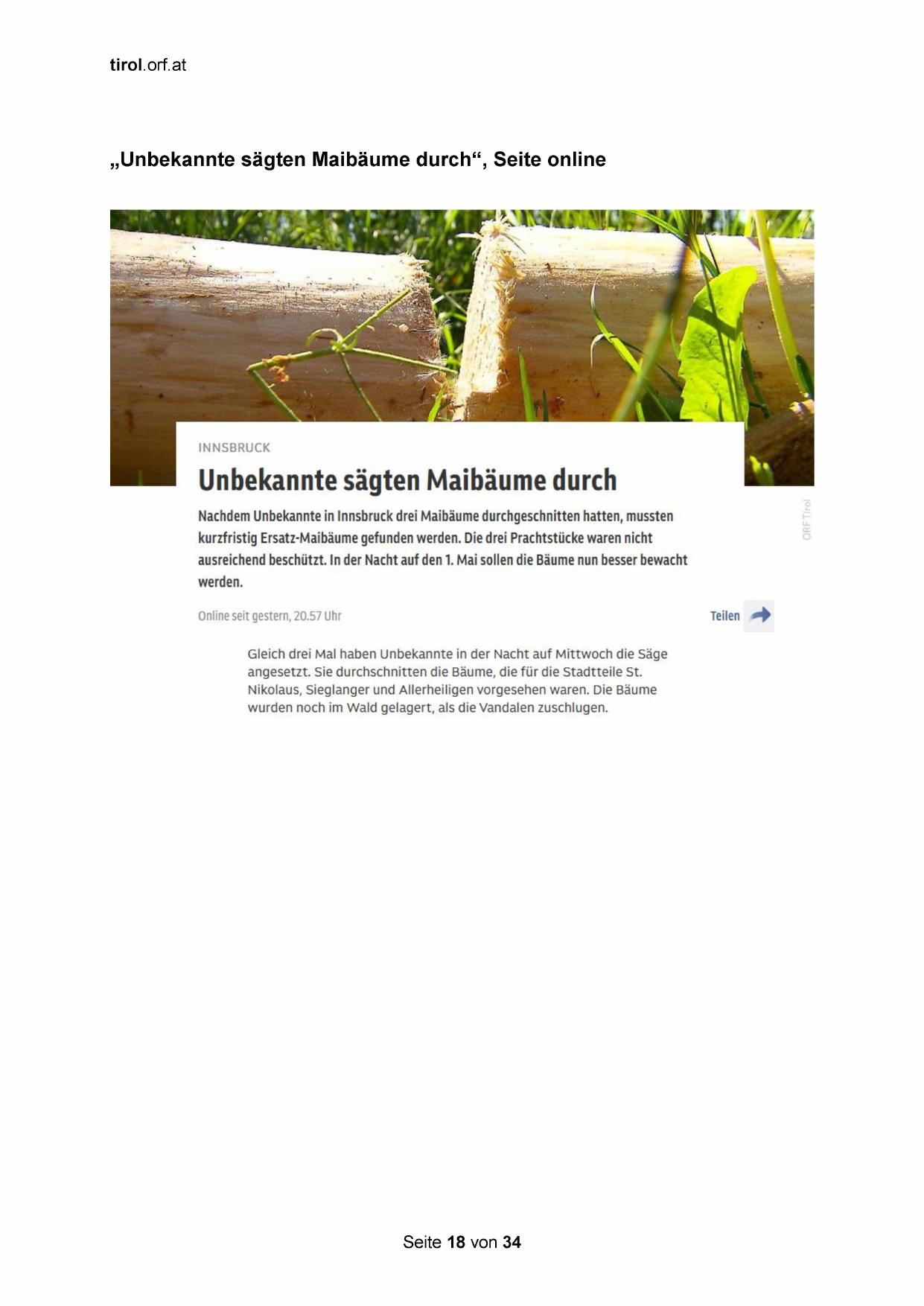 Nachdem Unbekannte in Innsbruck drei Maibäume durchgeschnitten hatten, mussten