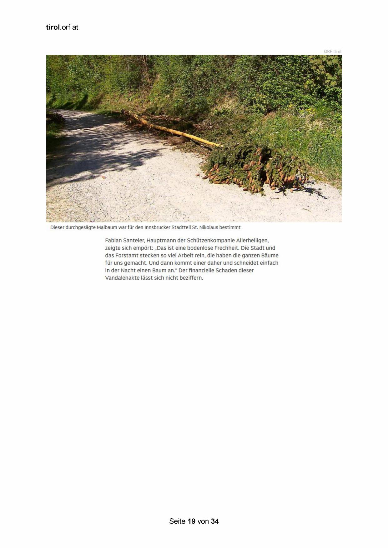 Dieser durchgesägte Maibaum war für den Innsbrucker Stadtteil St. Nikolaus bestimmt