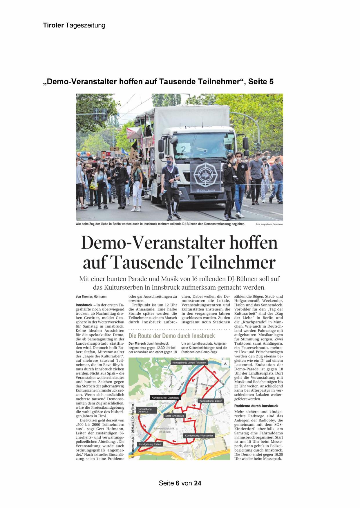 in lnnsbrück meh_rere rollende DJ-Bühnen den Demonsfrationszug begleiten.