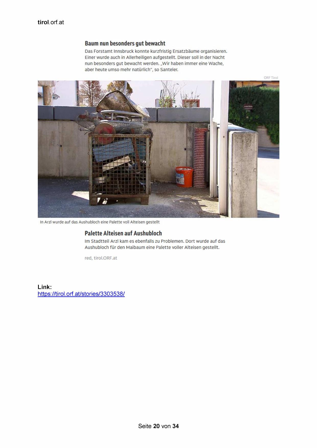 In Arzl wurde auf das Aushubloch eine Palette voll Alteisen gestellt