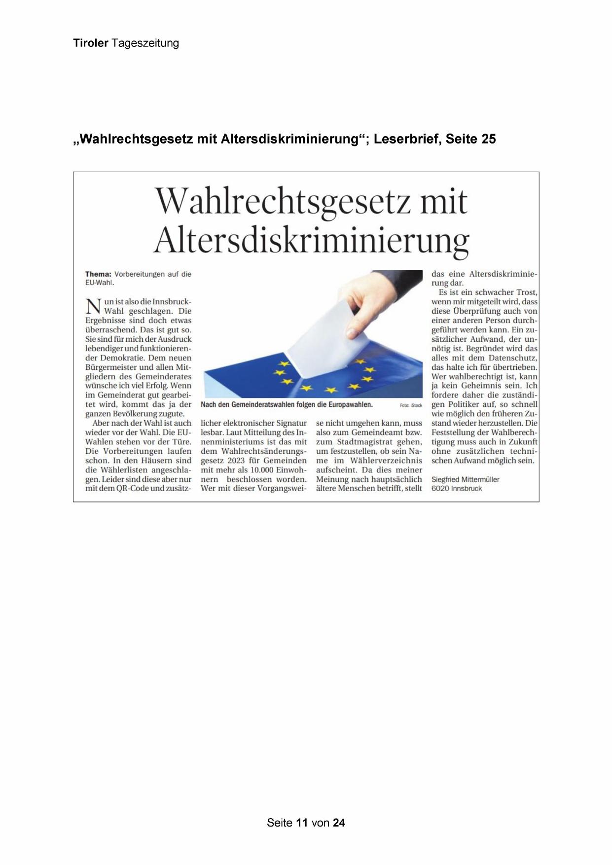 „Wahlrechtsgesetz mit Altersdiskriminierung“; Leserbrief, Seite 25