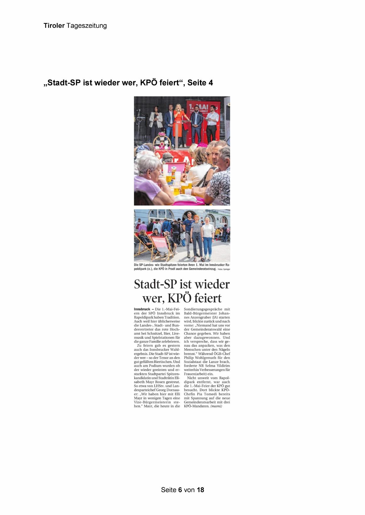 poldipark (0o.), die KPÖ in Pradl auch den Gemeinderatseinzug. Fotos: Spiinger