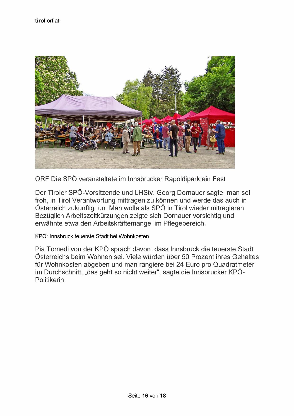 ORF Die SPÖO veranstaltete im Innsbrucker Rapoldipark ein Fest