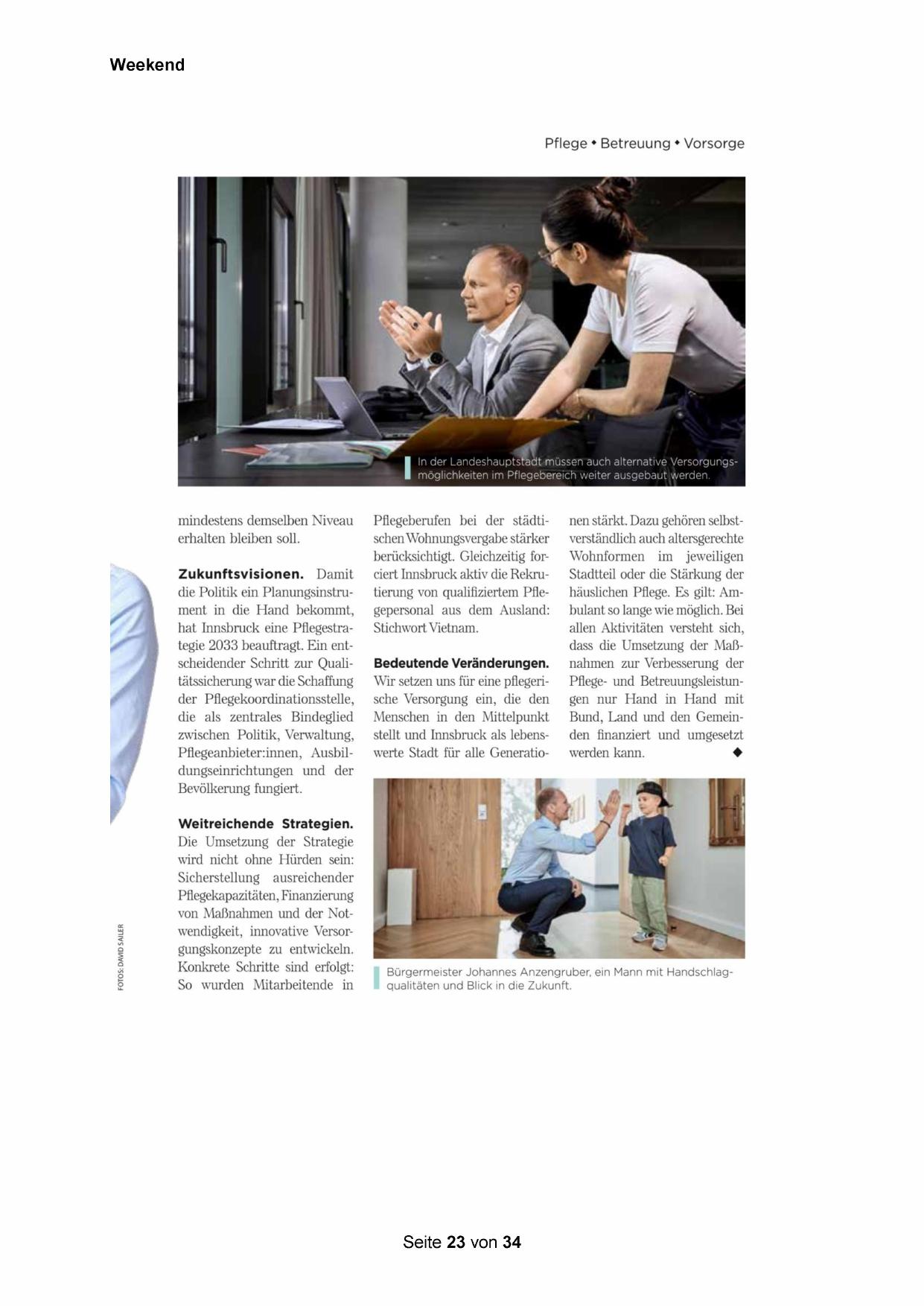 hat Innsbruck eine Pflegestrategie 2033 beauftragt. Ein entscheidender Schritt zur Qualitätssicherung war die Schaffung